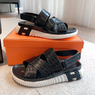 HM ELECTRIC CROCODILE MOTIF SANDAL BLACK CALFSKIN