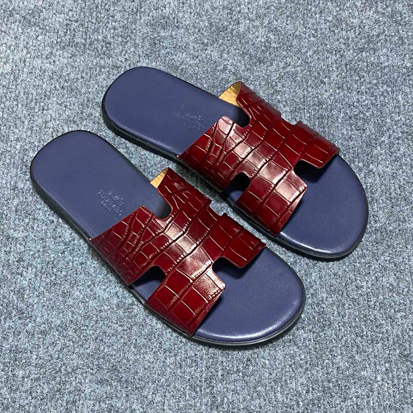 HM IZMIR CROCODILE MOTIF SANDAL INDIGO AND BRICK CALFSKIN