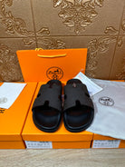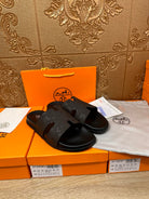 HM IZMIR SLIPPER BLACK AND DARK BROWN CALFSKIN