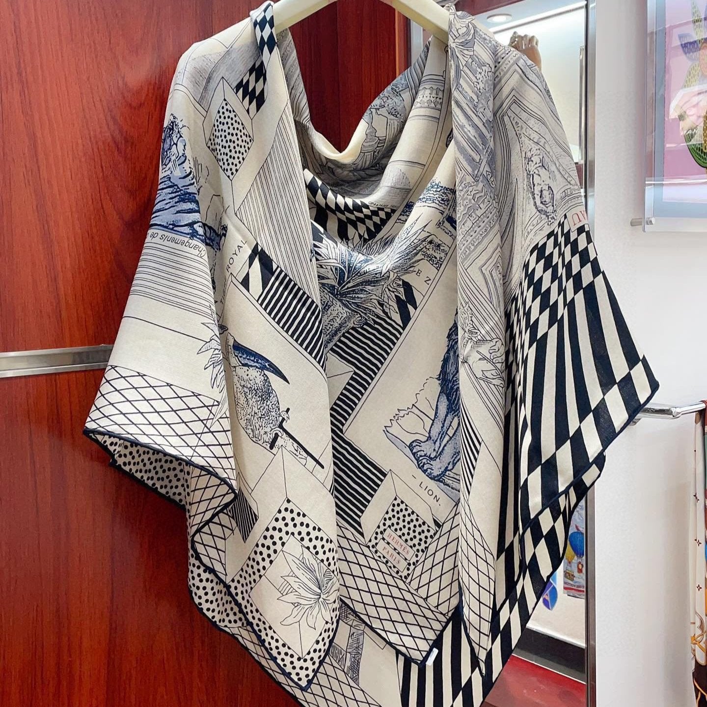 Grand Theatre Nouveau Scarf 135 CM In Black Colorful Cashmere And Silk 362249