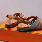 HM 25 Heracles Sandal Brown Calfskin Dark Grey Canvas