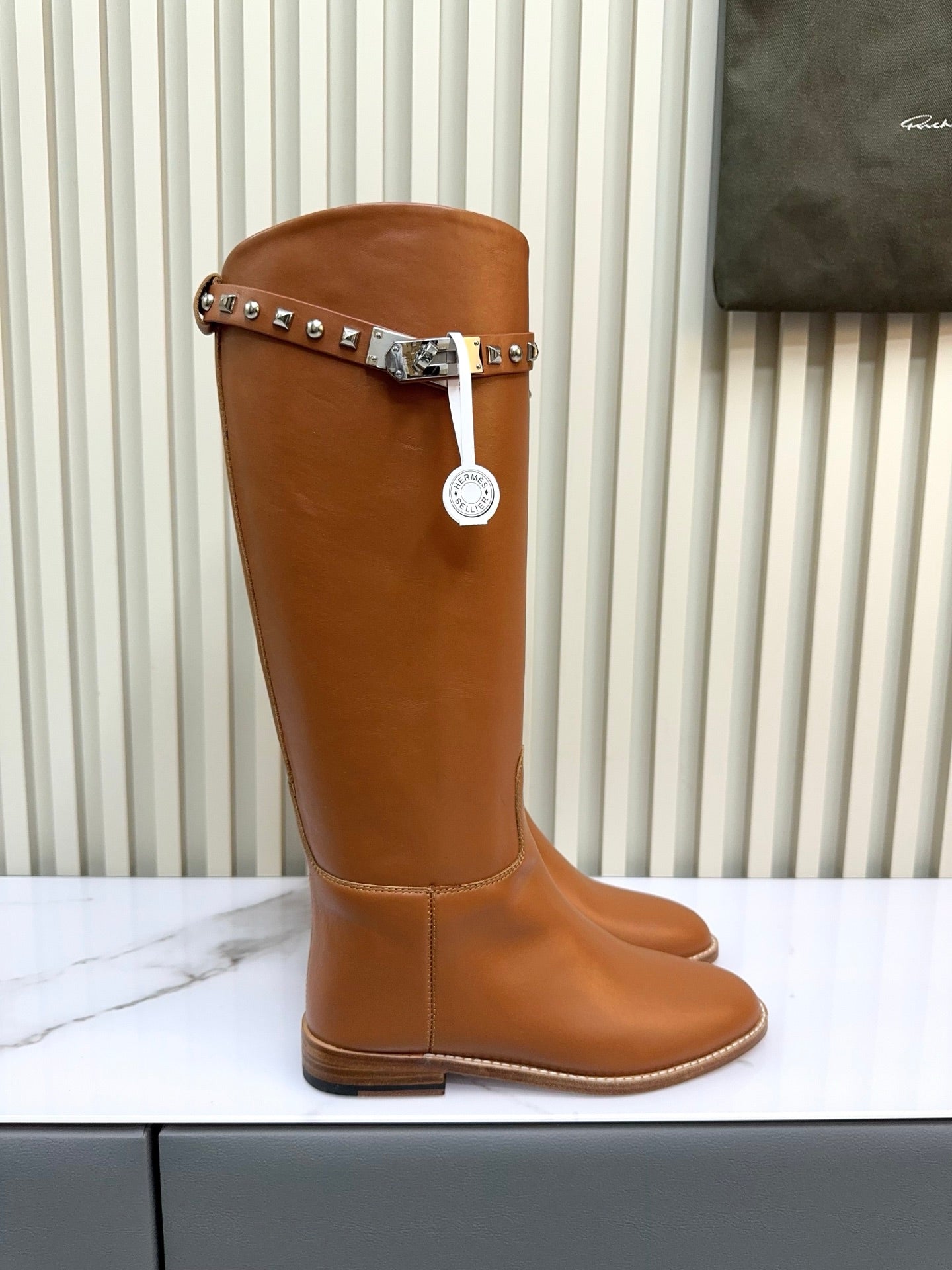 HM 25ss Kelly Buckle Riding Boots Camel Brown Cowhide 576123