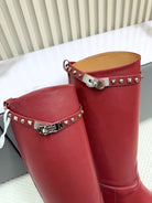 HM 25ss Kelly Buckle Riding Boots Red Cowhide 576124