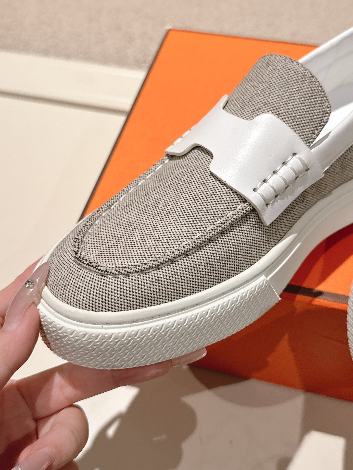 HM 25ss Platform Loafers Gray White Denim Cowhide 577167