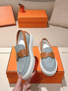 HM 25ss Platform Loafers Light Blue Brown Denim Sheepskin 577170