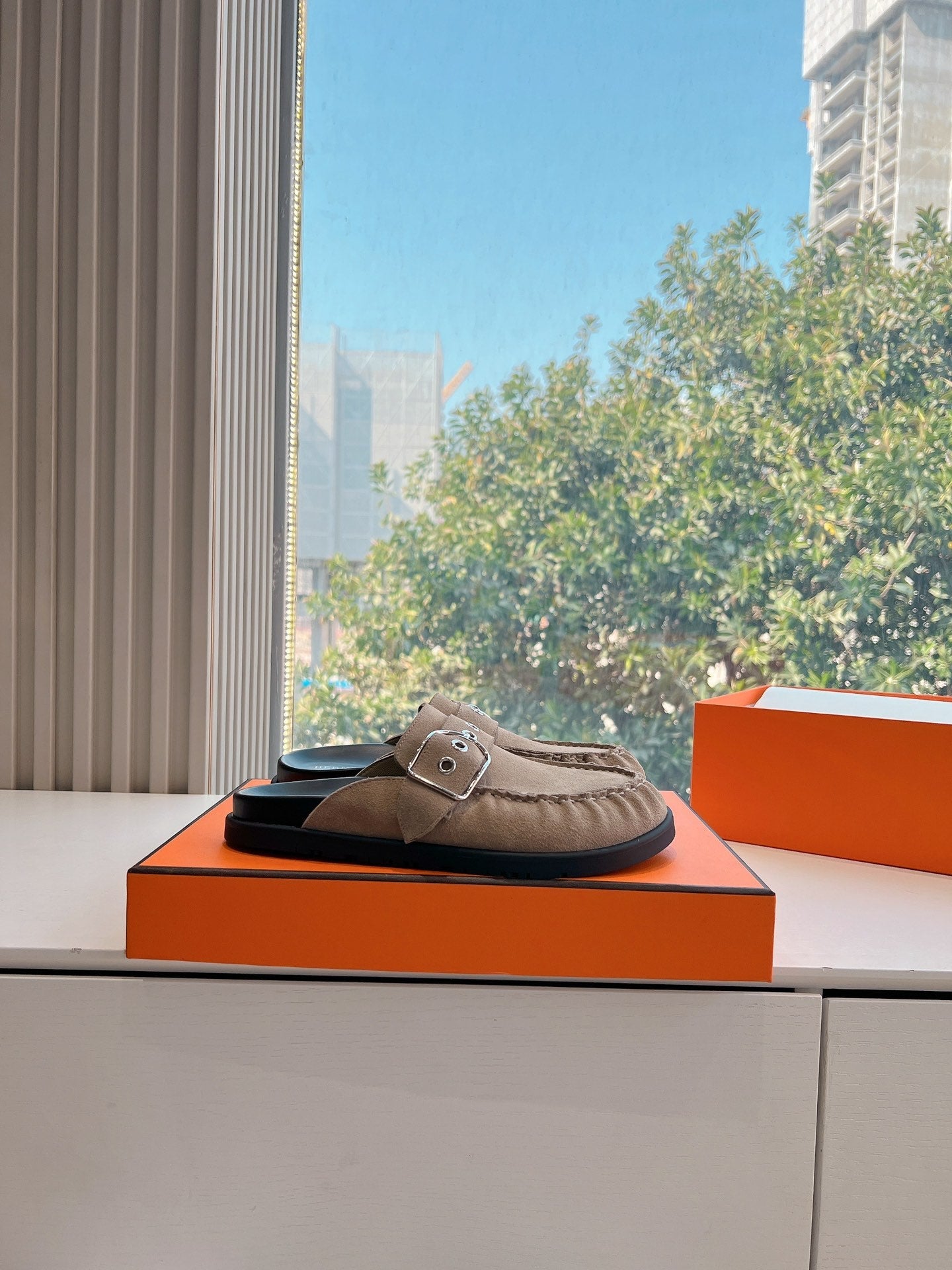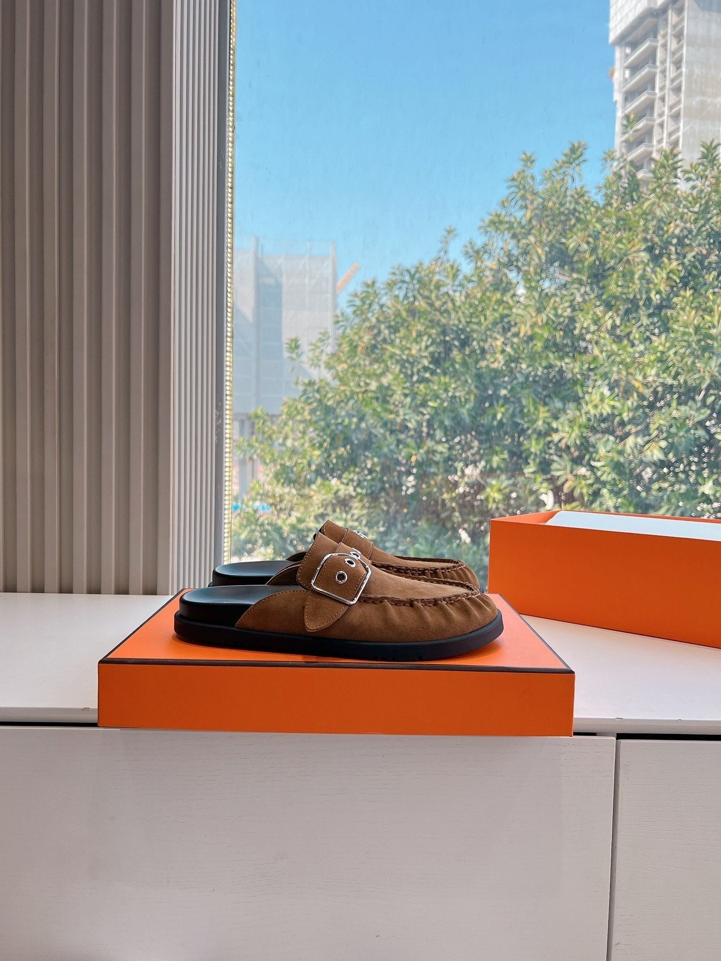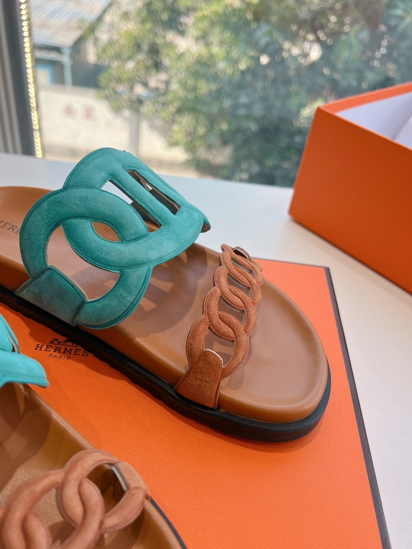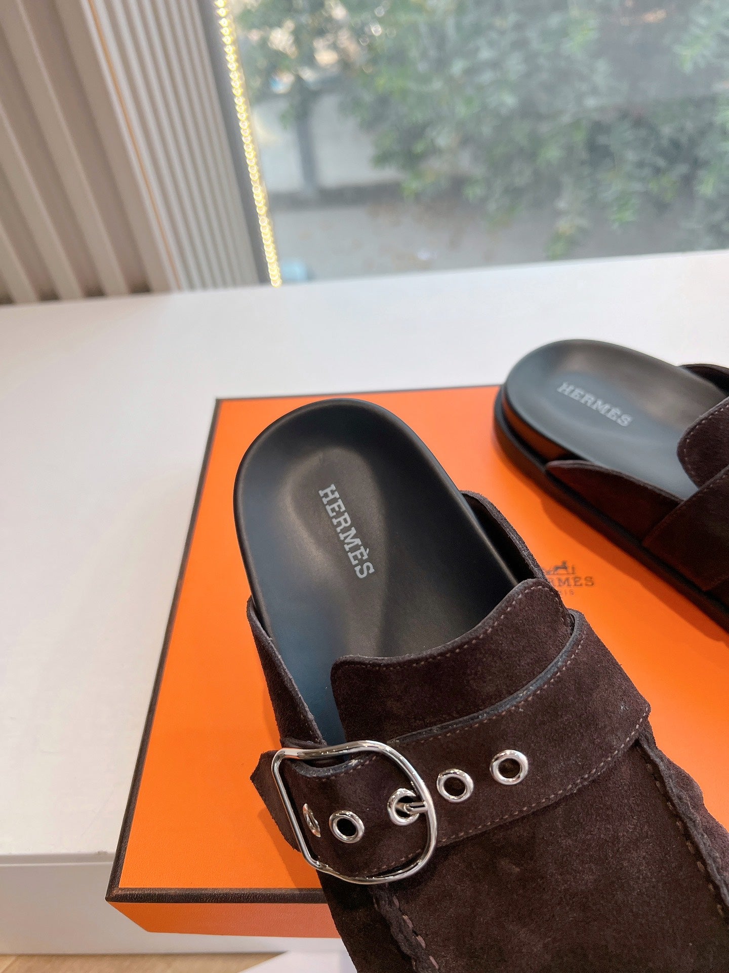 HM 25 Chypre Sandal Orange Red Suede Calfskin Silver H