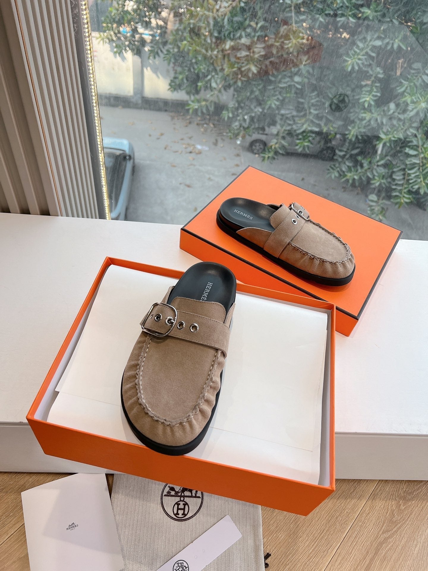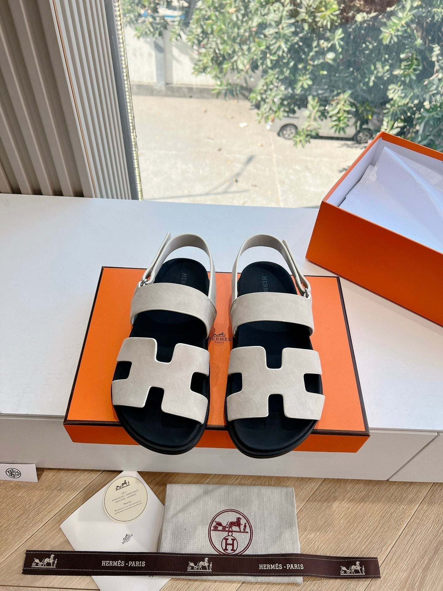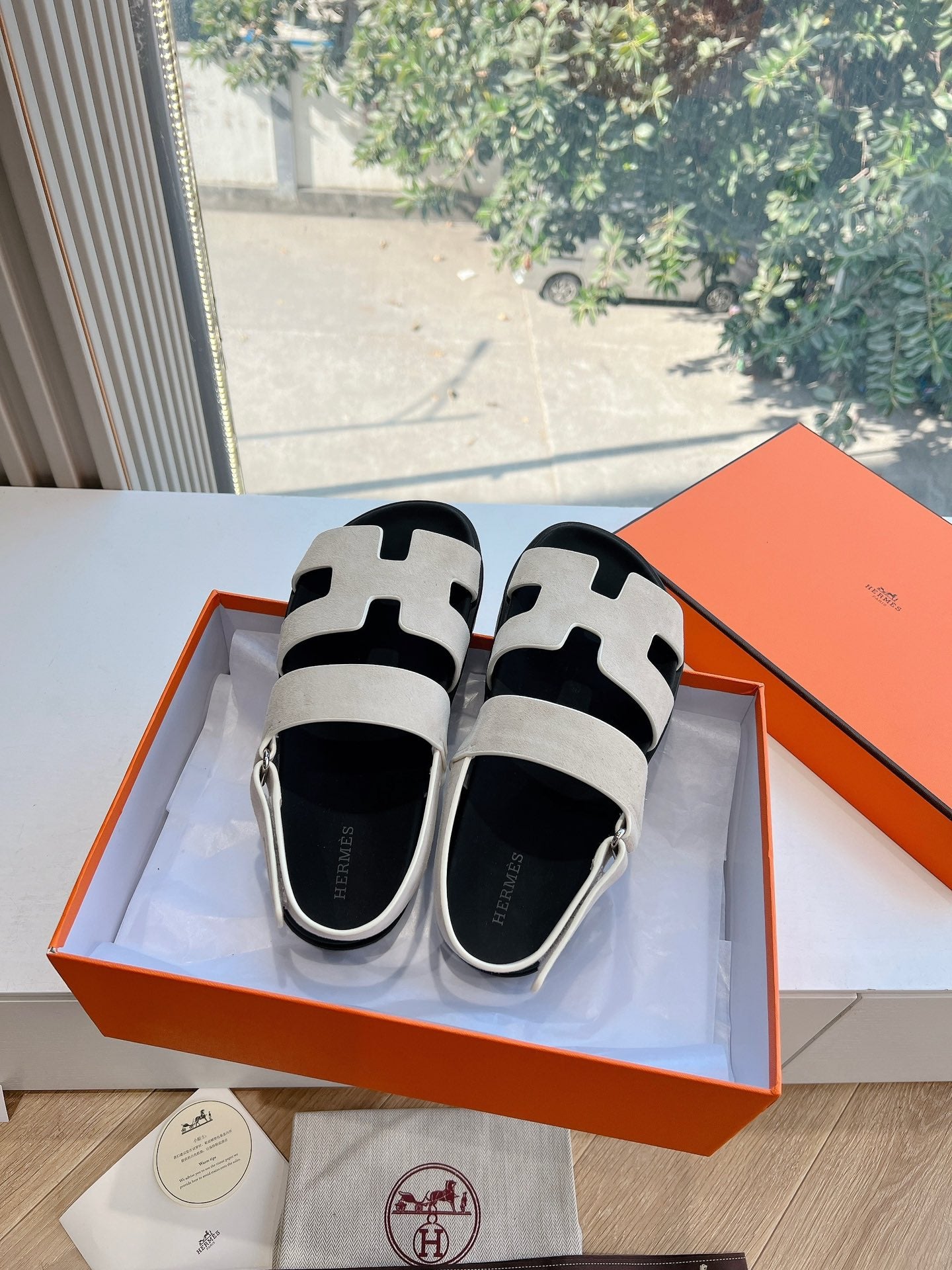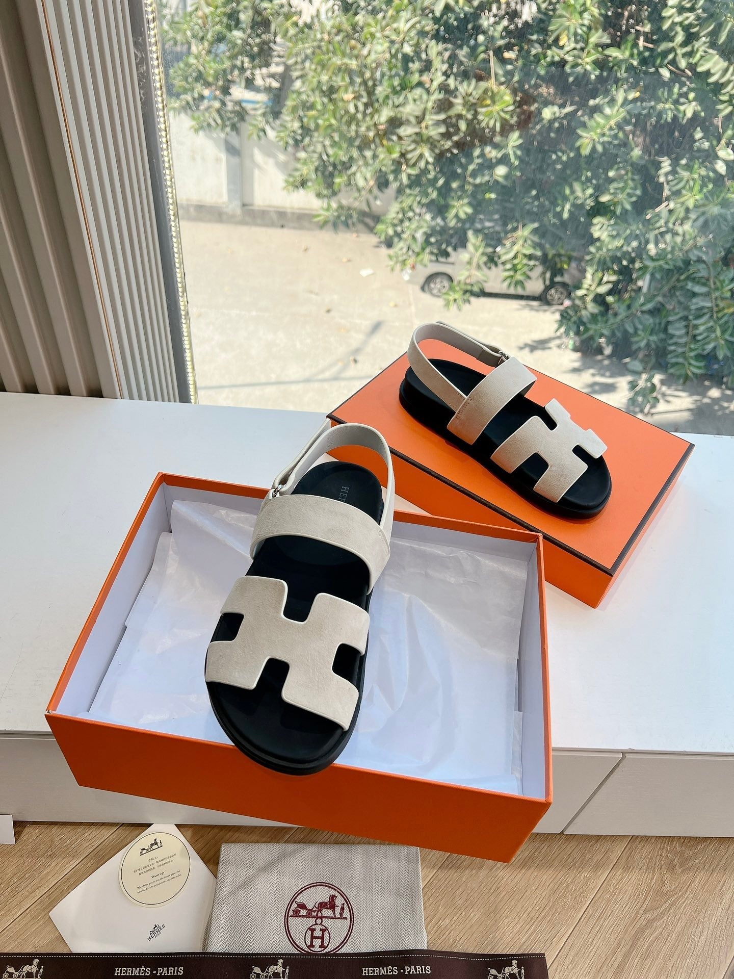 HM 25 Chypre Sandal Orange Red Suede Calfskin Silver H