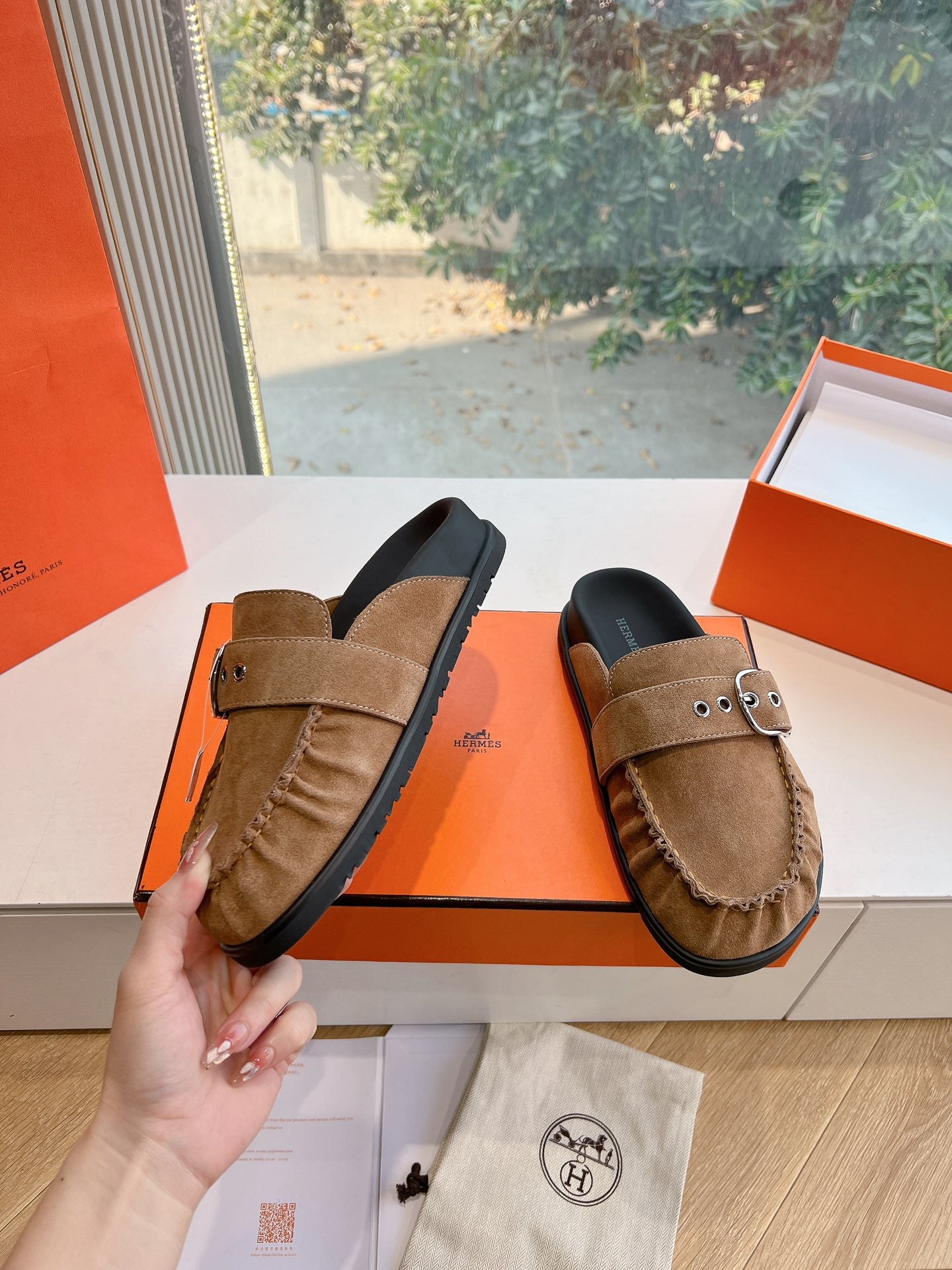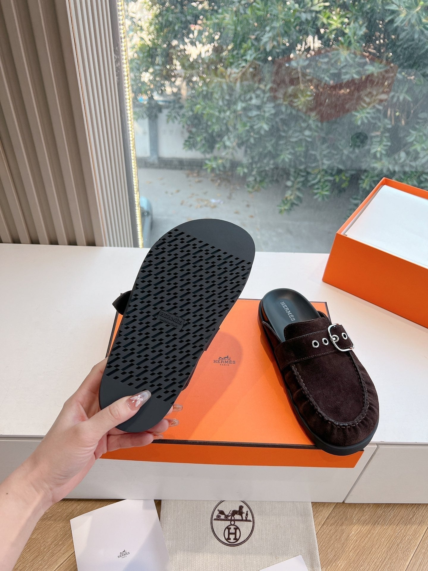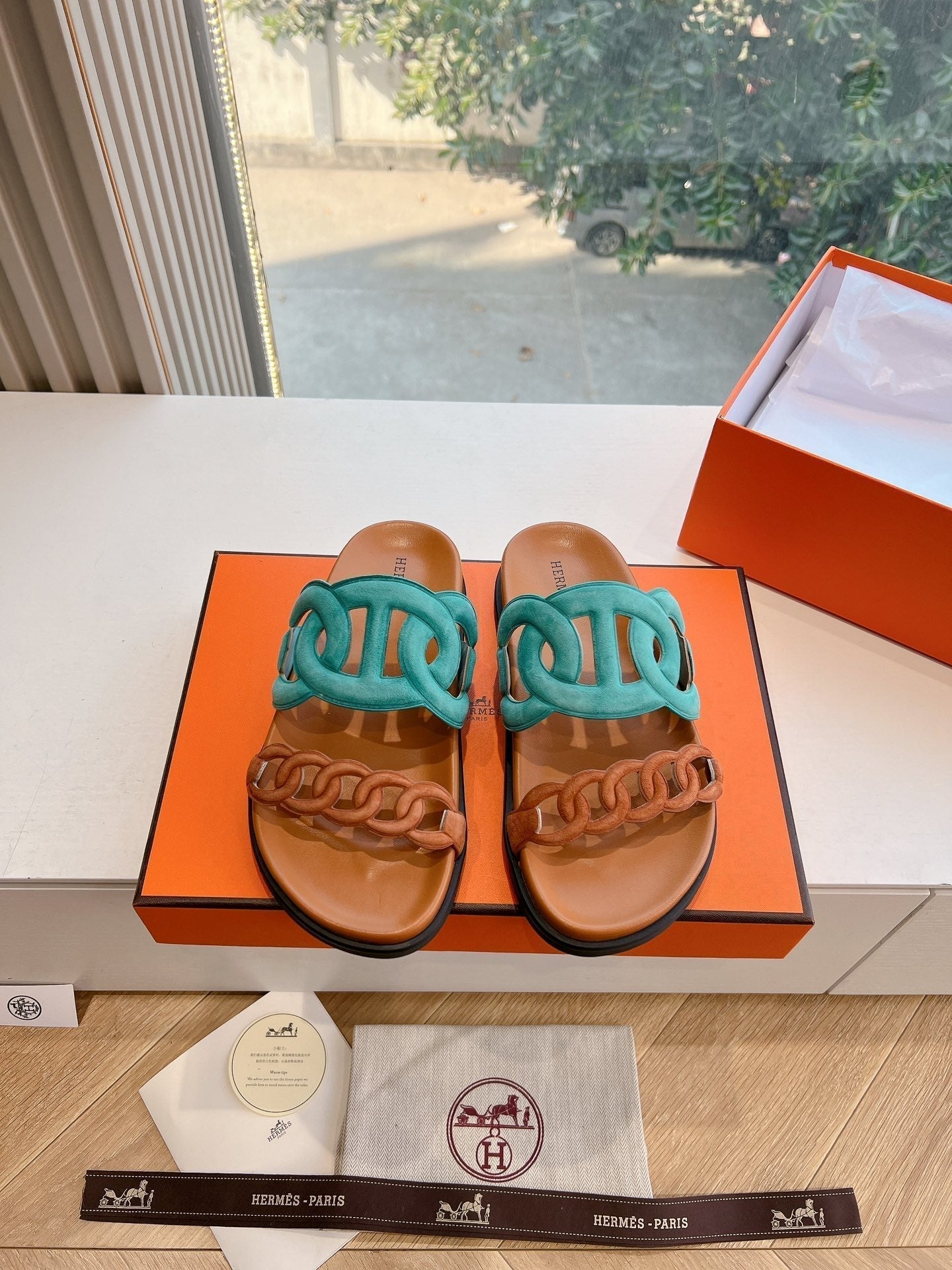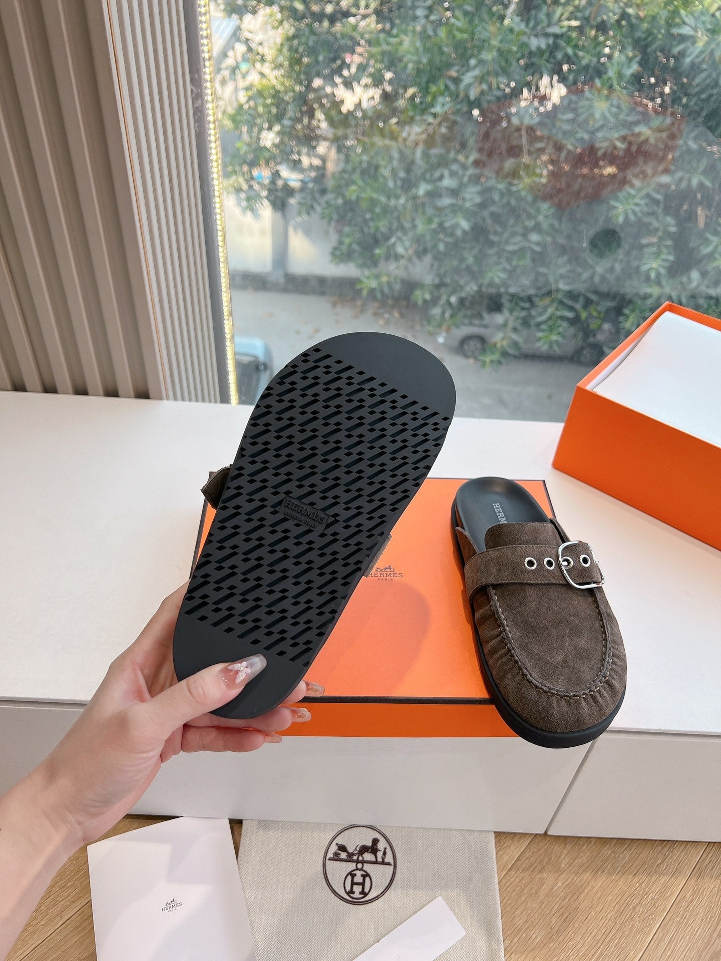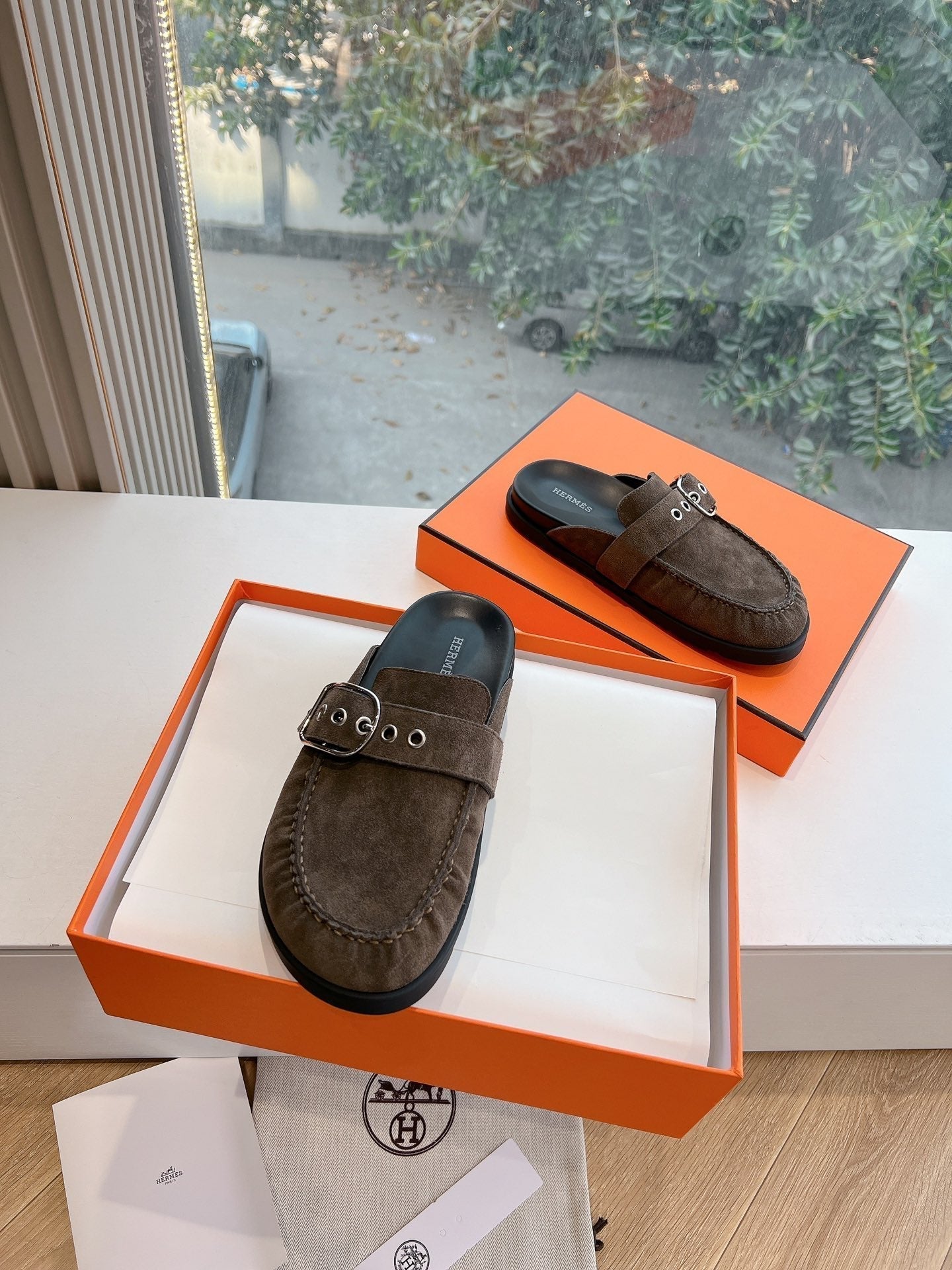 HM 25 Chypre Sandal Orange Red Suede Calfskin Silver H