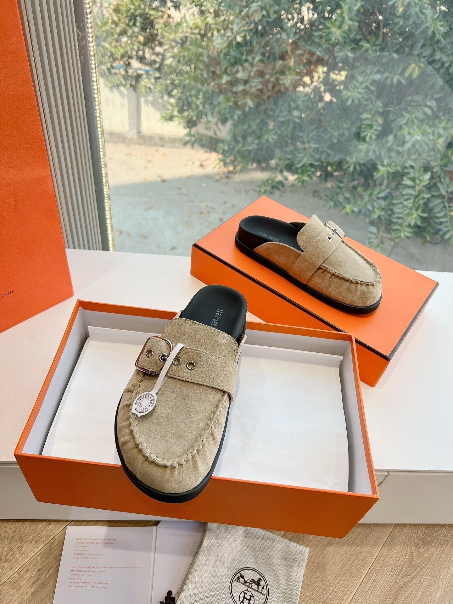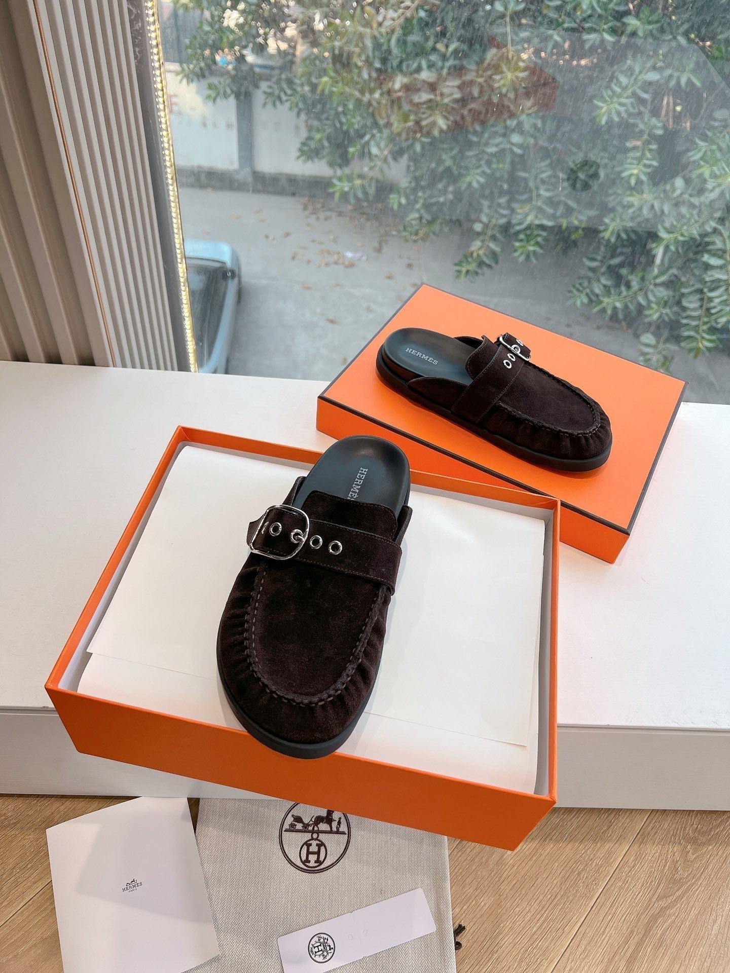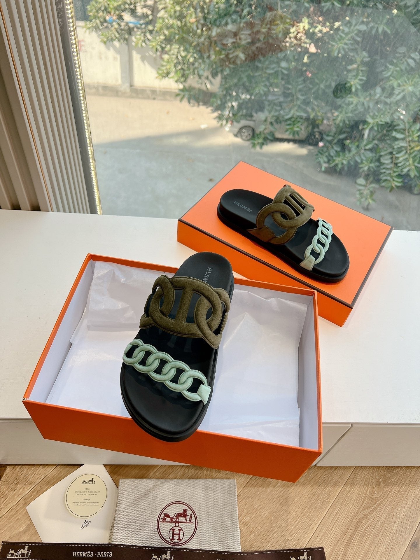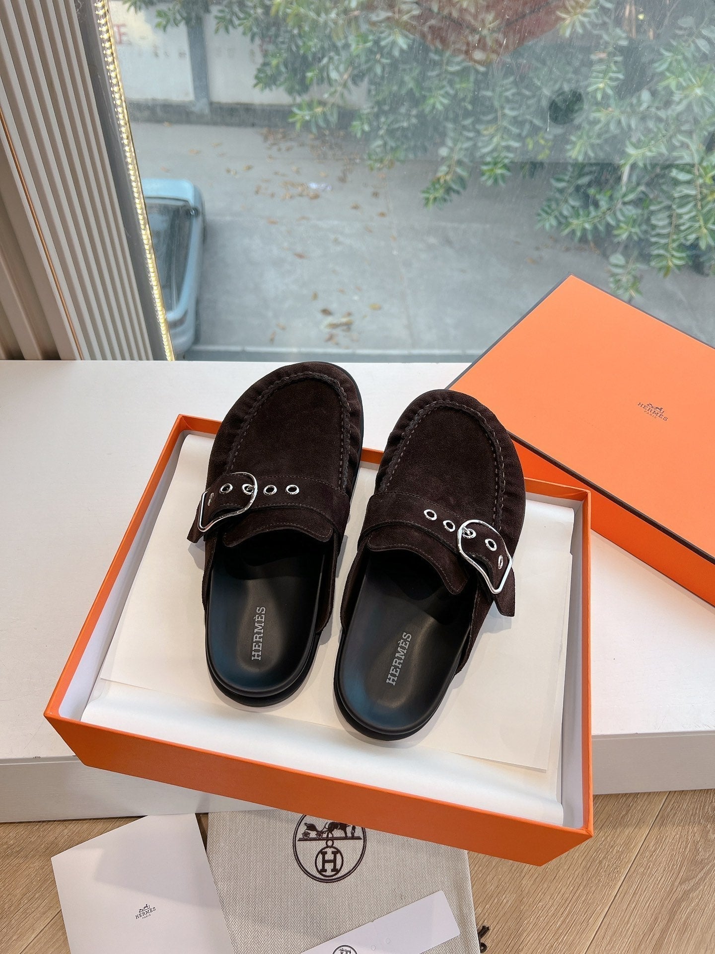 HM 25 Chypre Sandal Orange Red Suede Calfskin Silver H