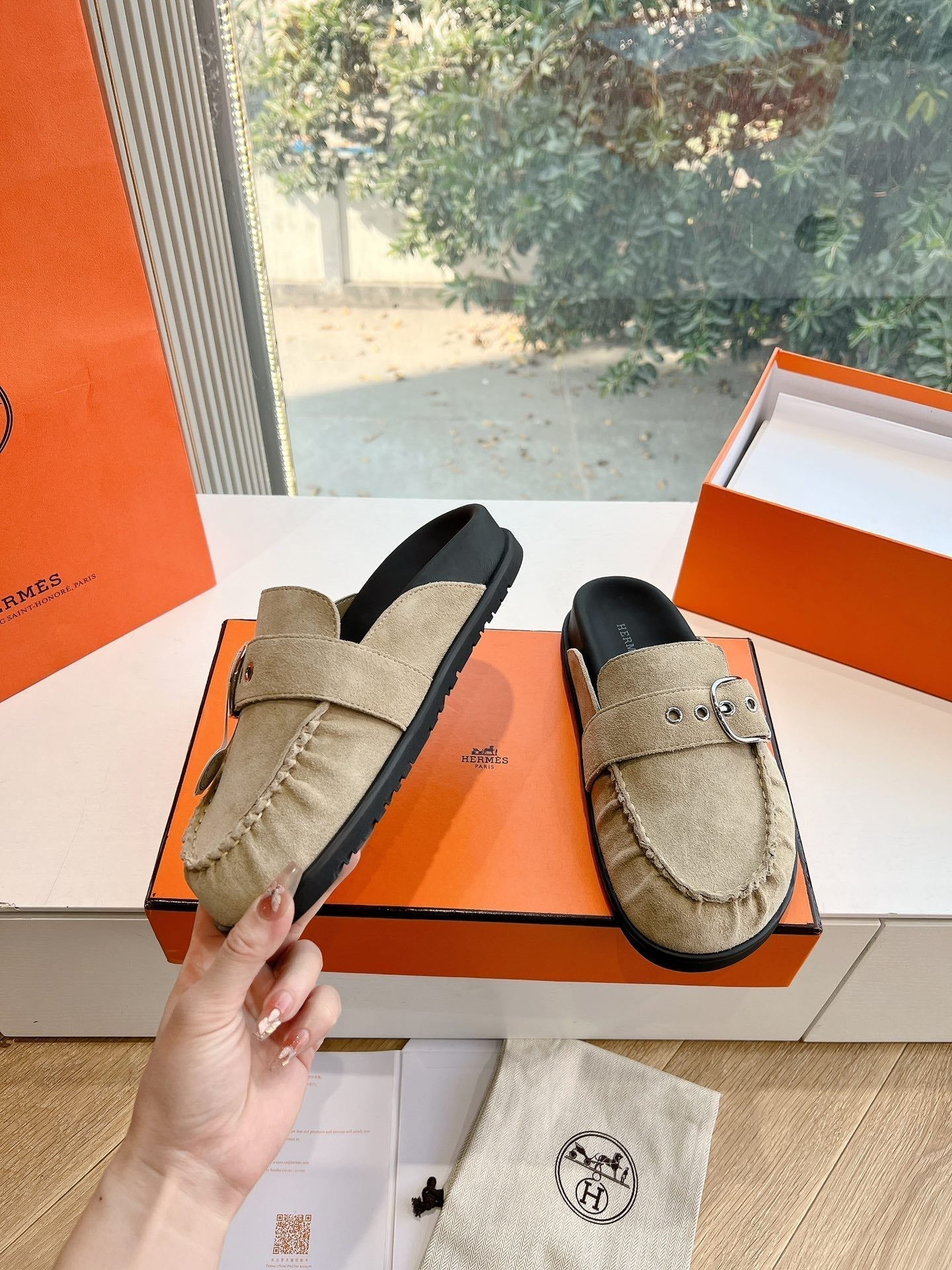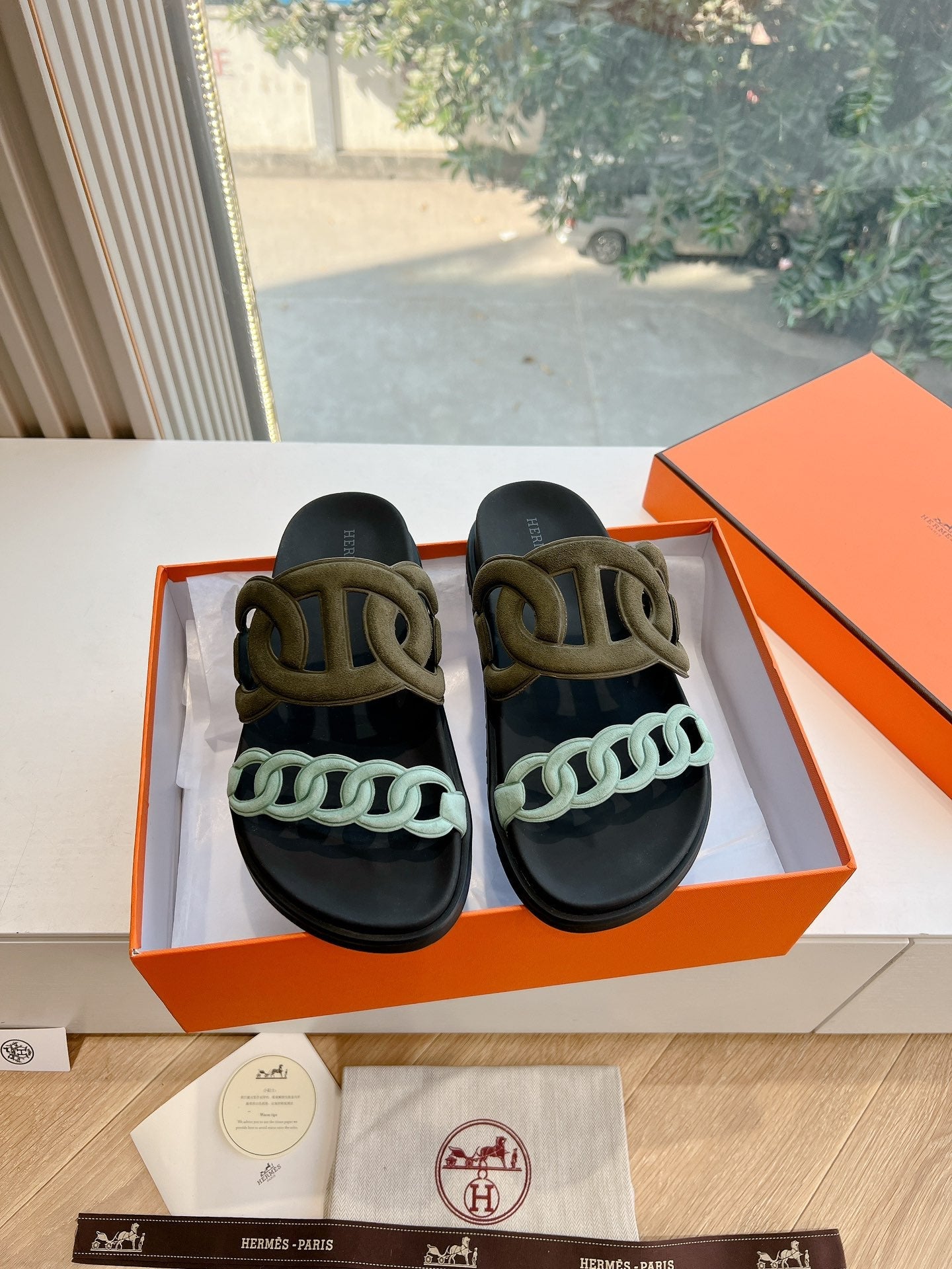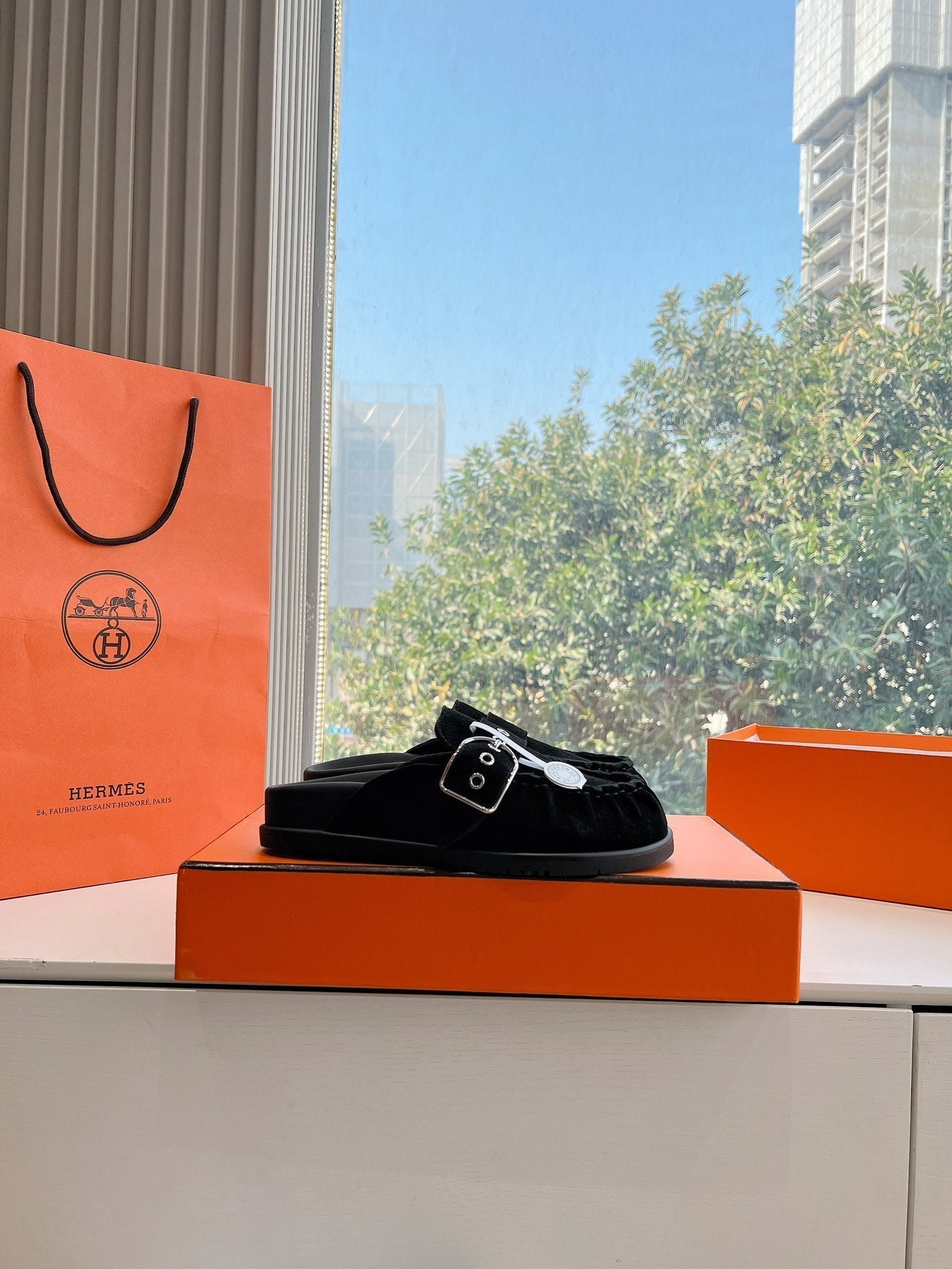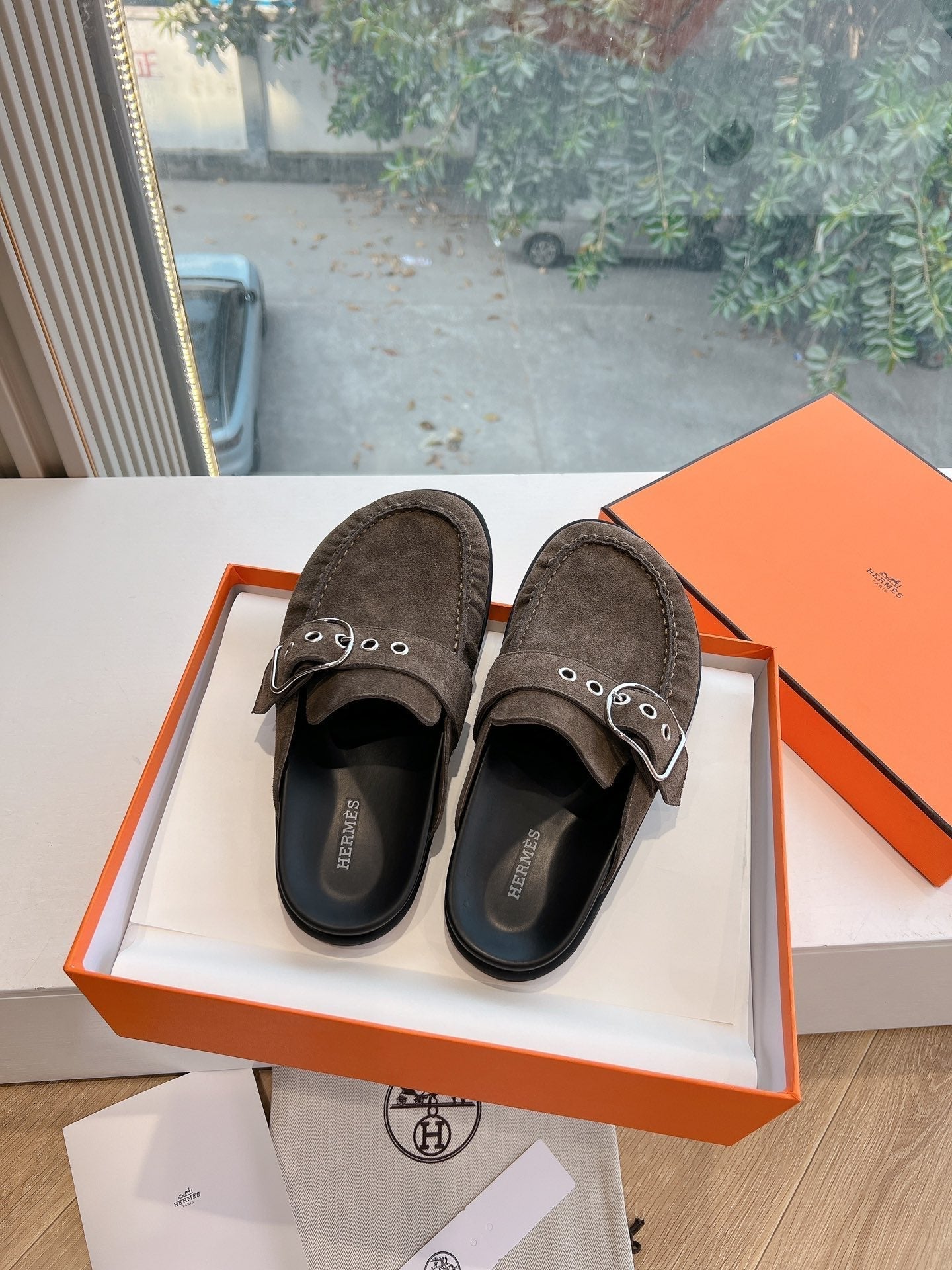 HM 25 Chypre Sandal Orange Red Suede Calfskin Silver H
