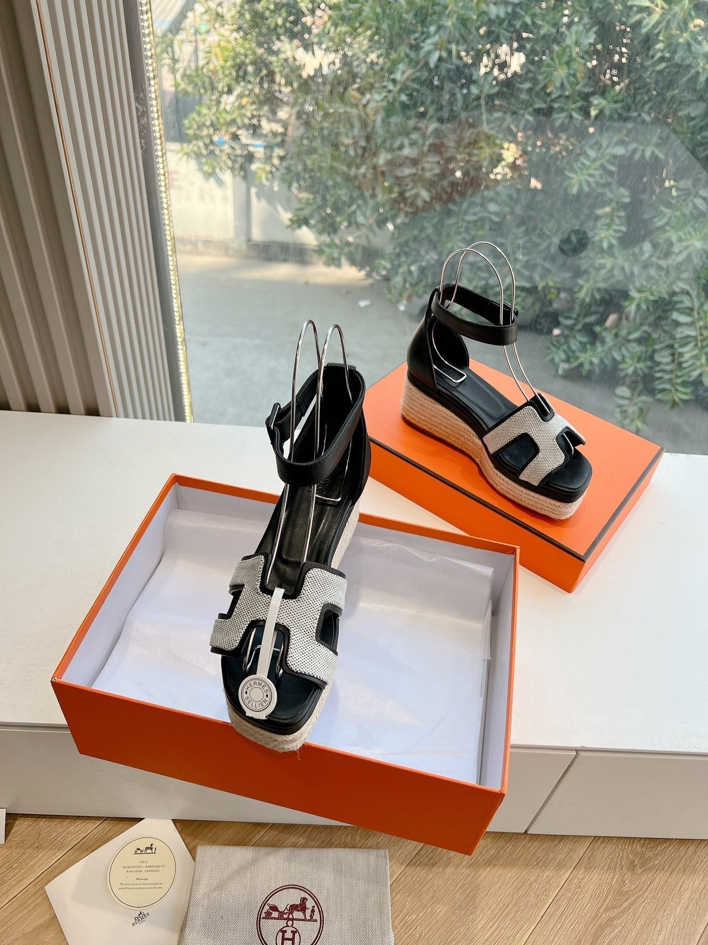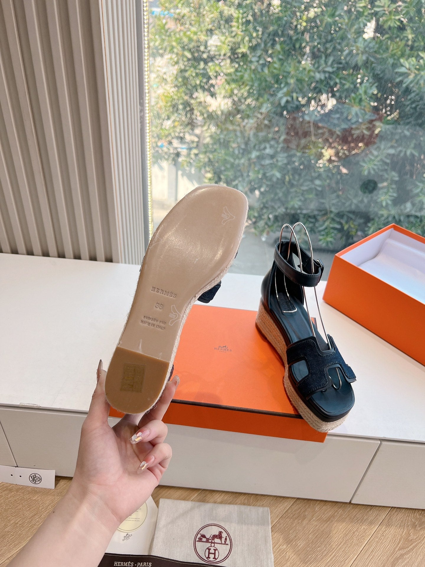 HM 25C Elda espadrille Black Mix White Denim and Goatskin 202832