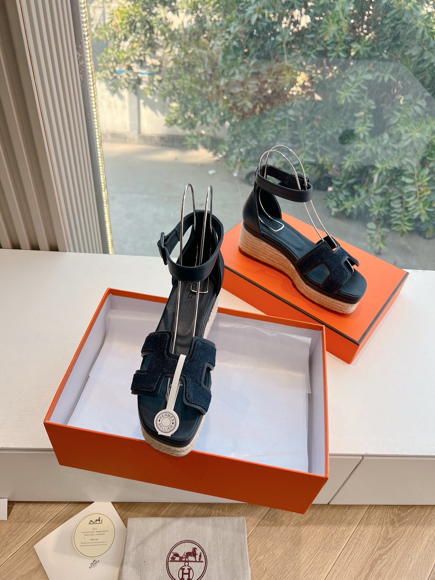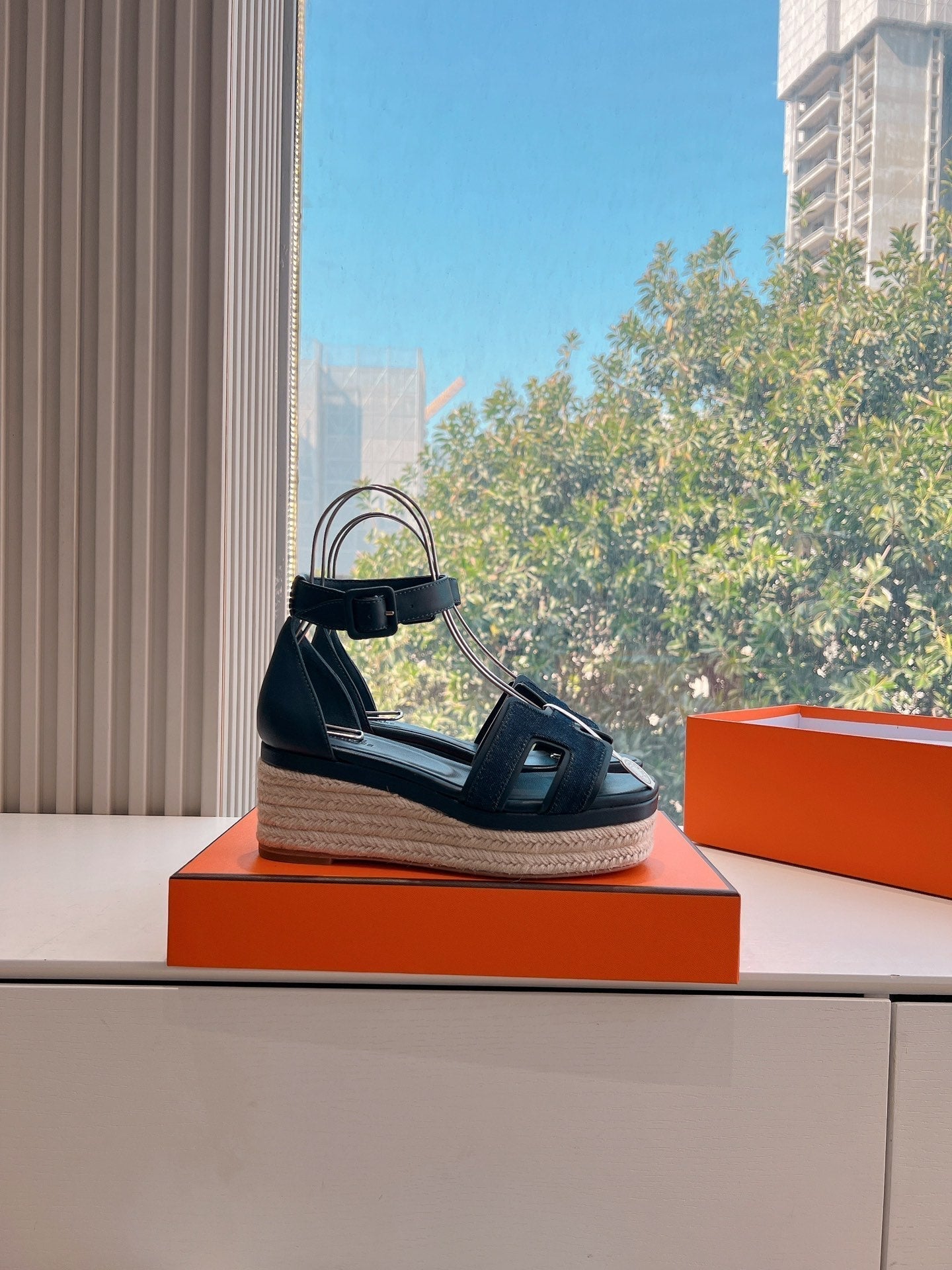 HM 25C Elda espadrille Bleu Brut Denim and Goatskin 202833