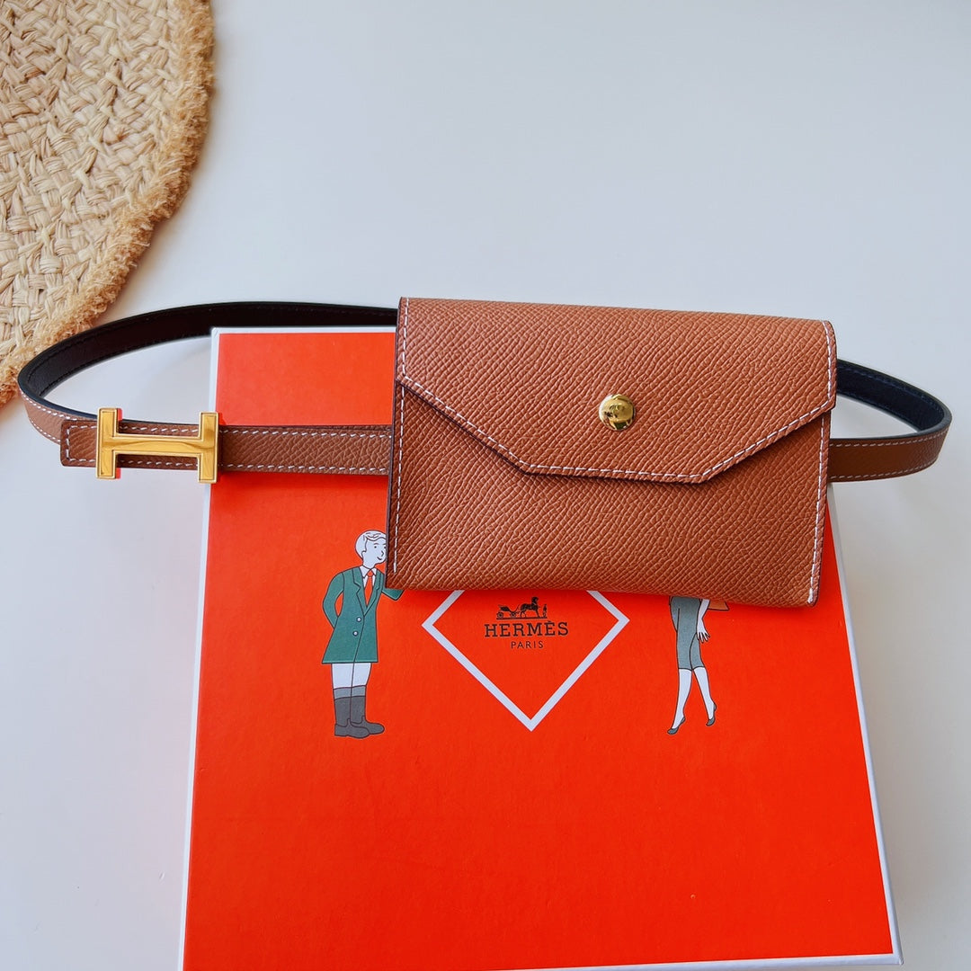 focus belt 13mm with kelly pocket brown epsom gold buckle