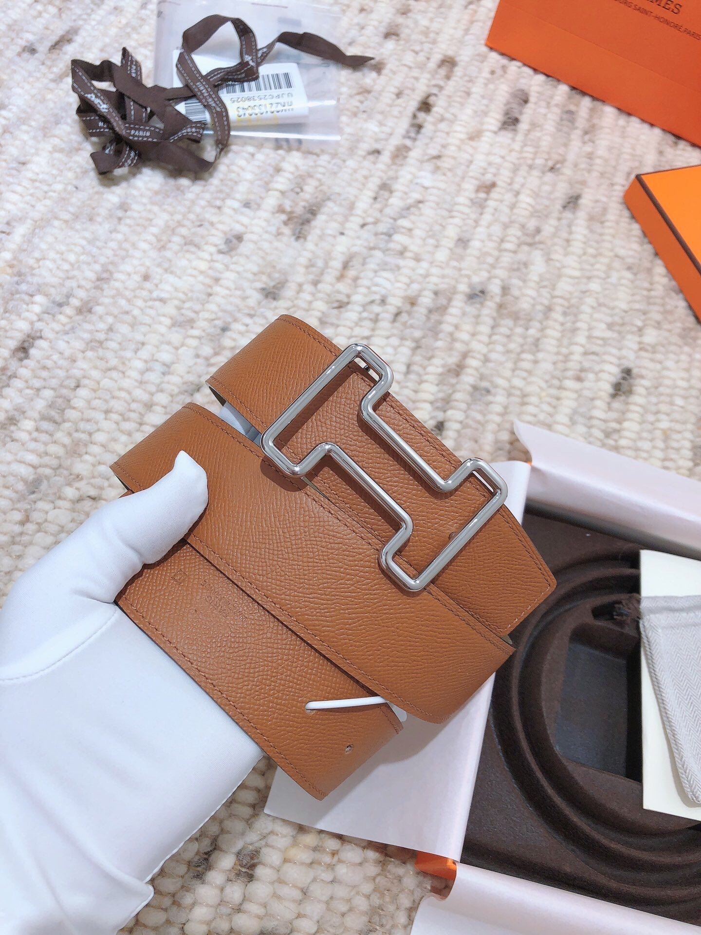 H TONIGHT BELT 38MM BROWN GREEN GREY LEATHER