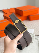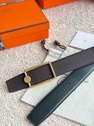 HM Gold Oscar Buckle Belt 38mm Black Chocolate Leather 187785