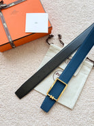 HM Gold Tube H Buckle Belt 38mm Prussian blue Black Leather 187522
