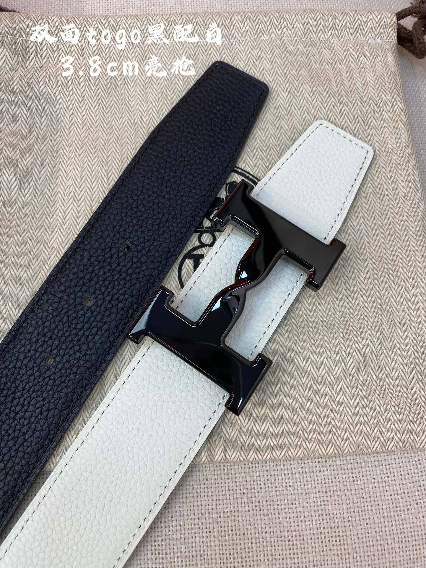 HM H BELT BUCKLE & REVERSIBLE BLACK AND WHITE LEATHER STRAP 38MM BLACK HARDWARE