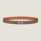 HM Silver Mors H buckle & Reversible 24 mm belt Orange Beige leather 125356