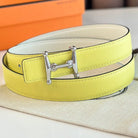 HM Silver Mors H buckle & Reversible 24 mm belt Yellow Beige leather 125367