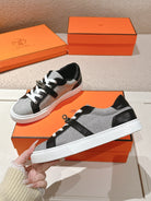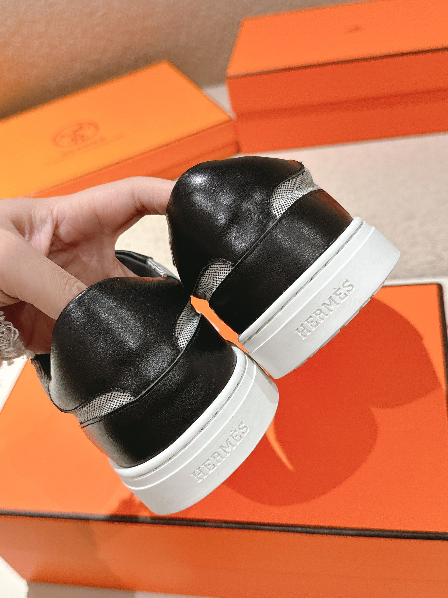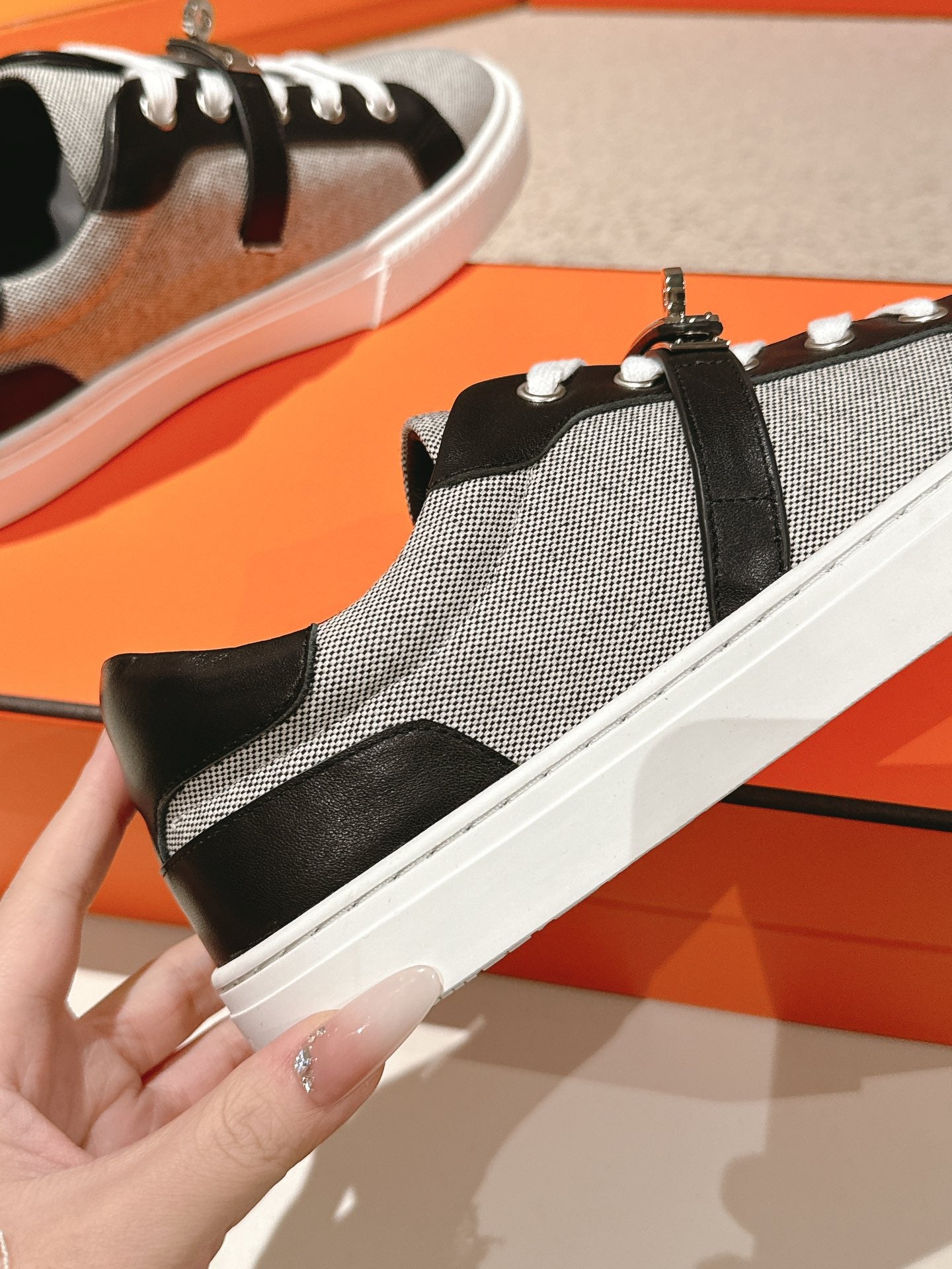 HM 25ss Kelly Buckle Sneakers Black Gray Cowhide Canvas 577490