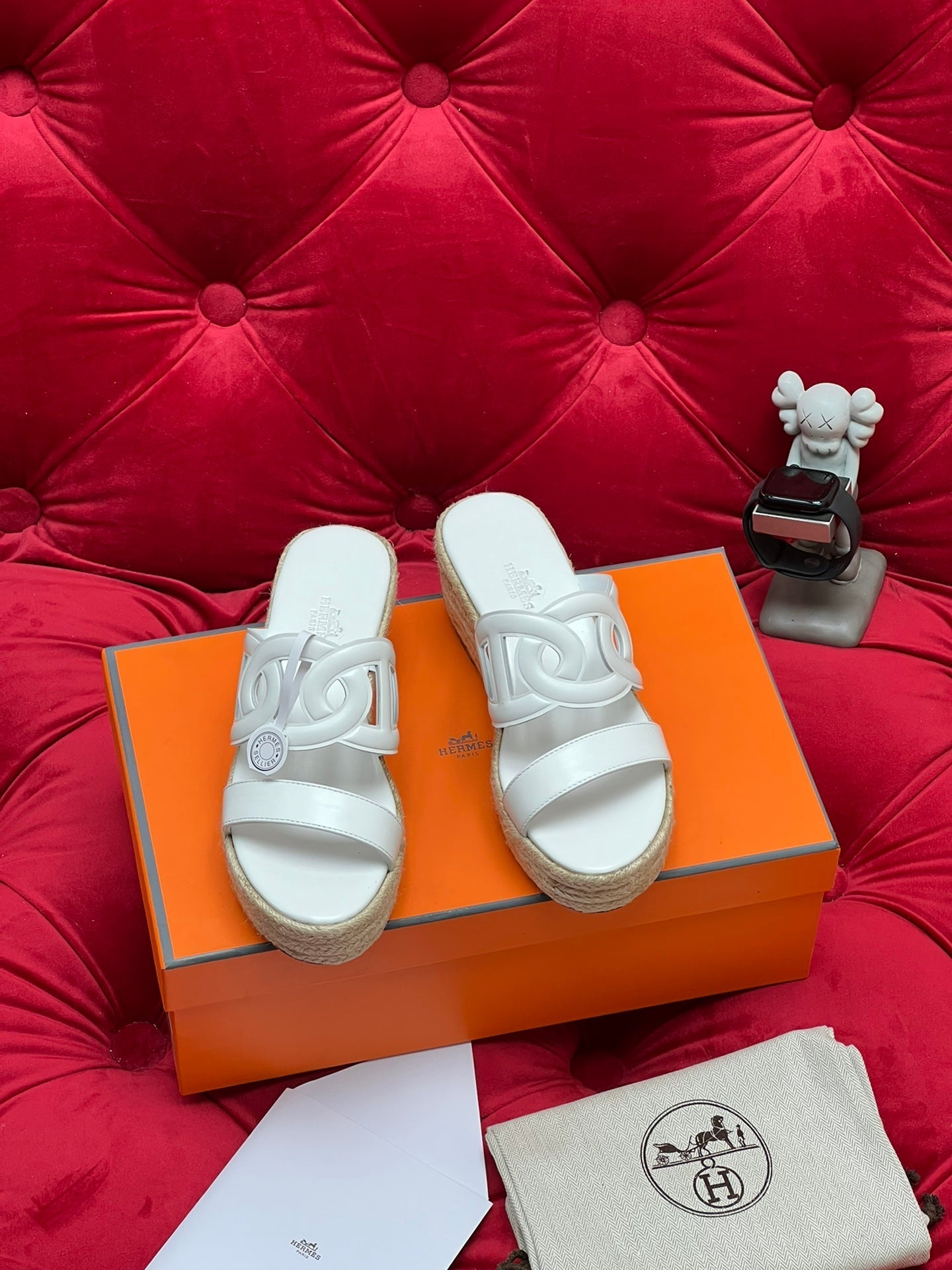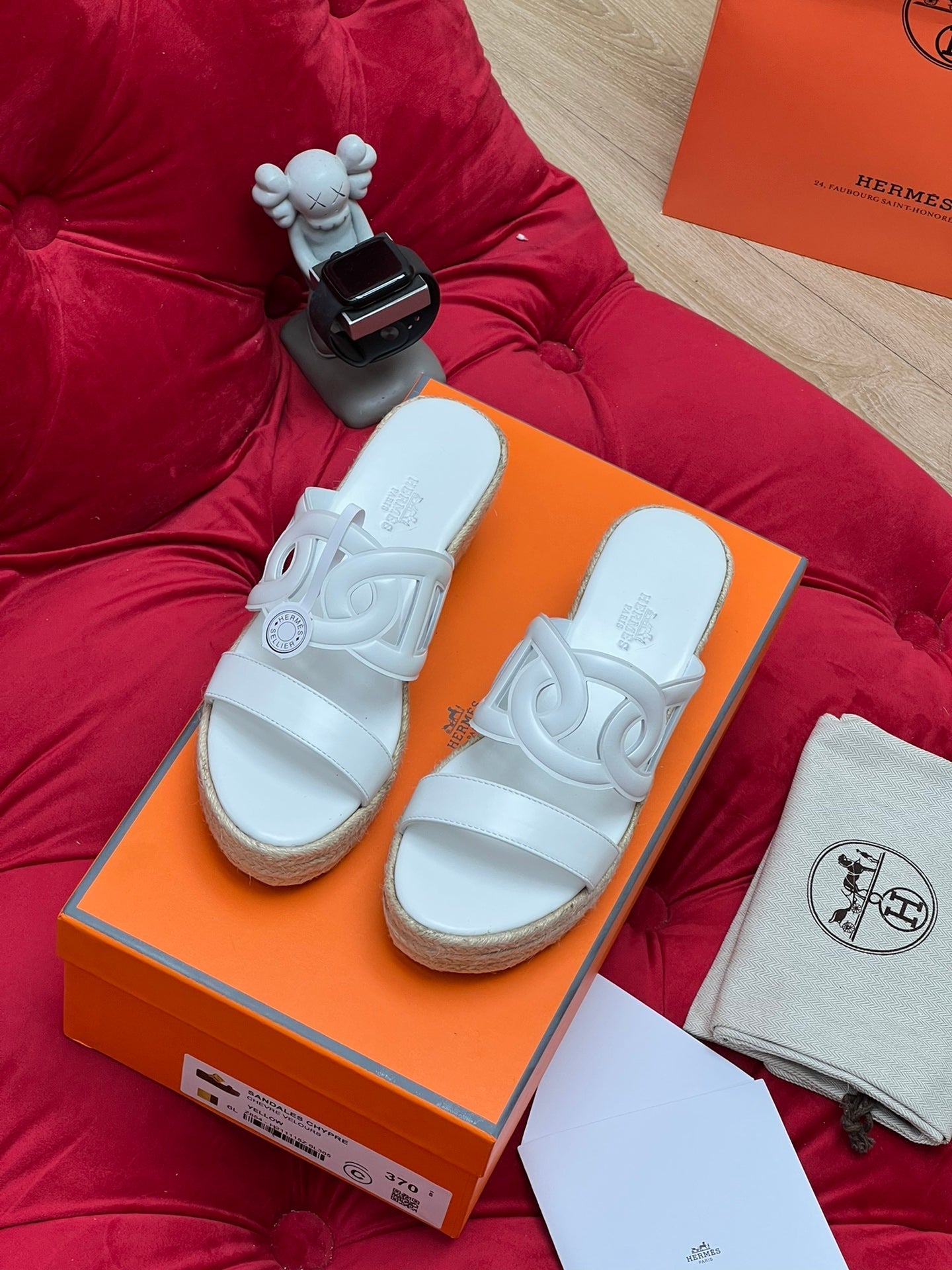 HM Feria Espadrille 20mm White Calfskin And Handwoven Hemp Rope 967989