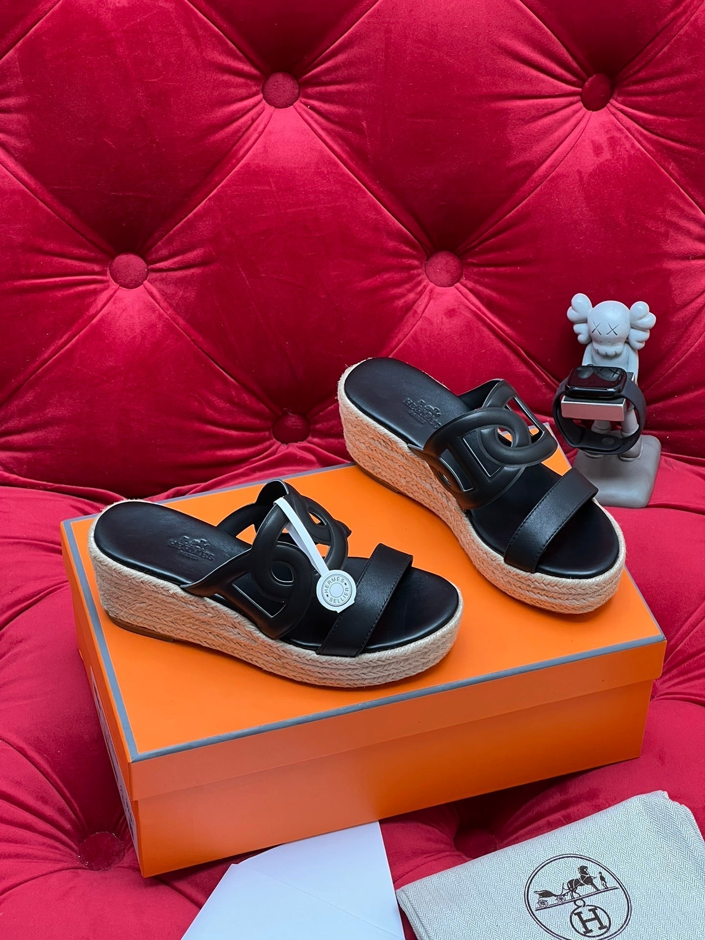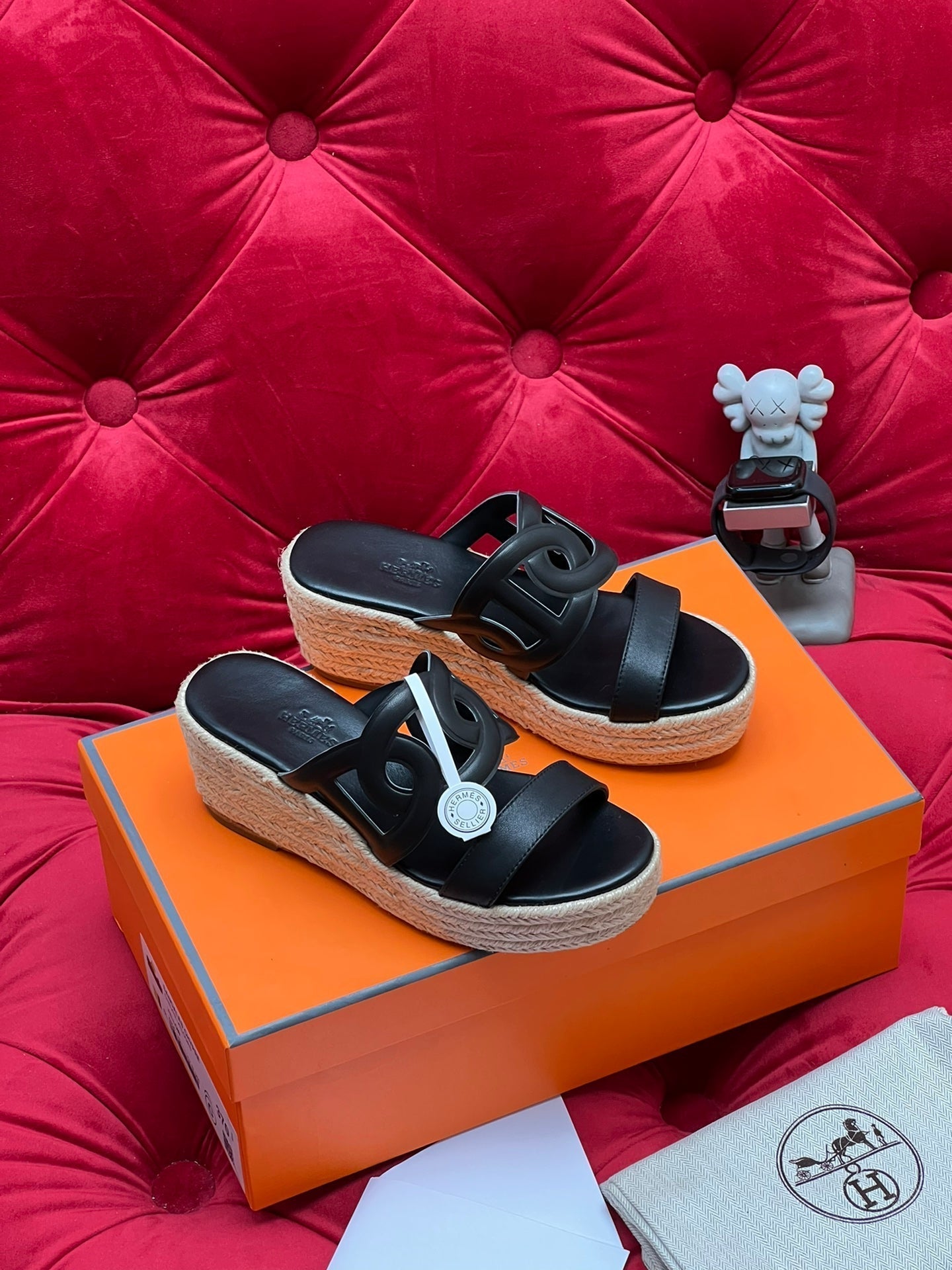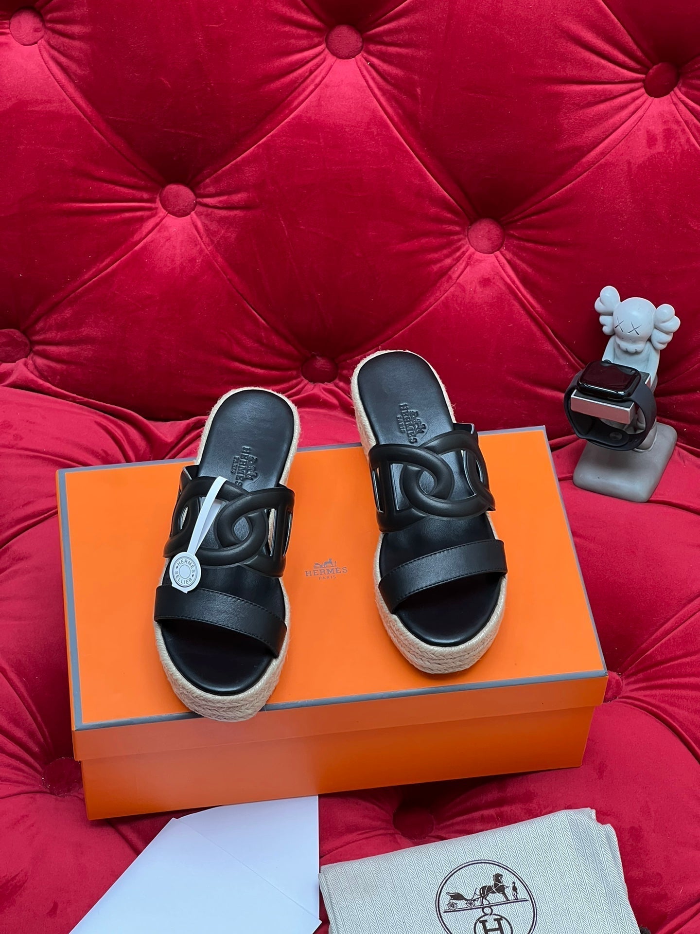 HM Feria Espadrille 20mm Black Calfskin And Handwoven Hemp Rope 967988