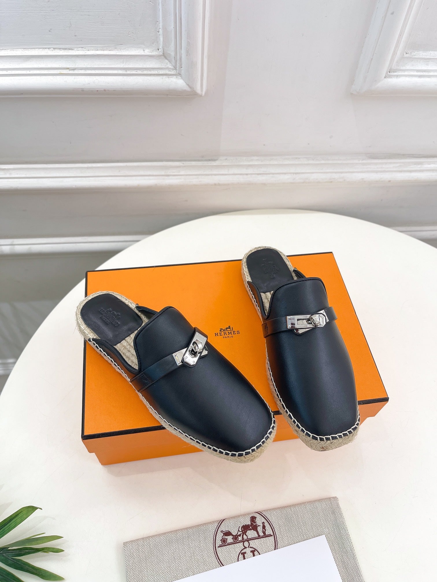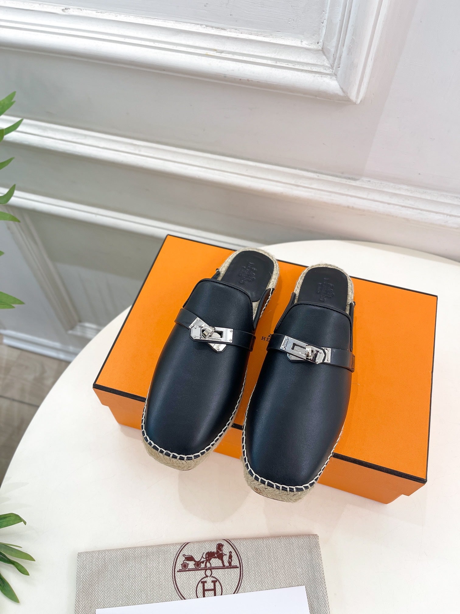 HM Lthea Espadrille Black Calfskin And Jute Rope 969498