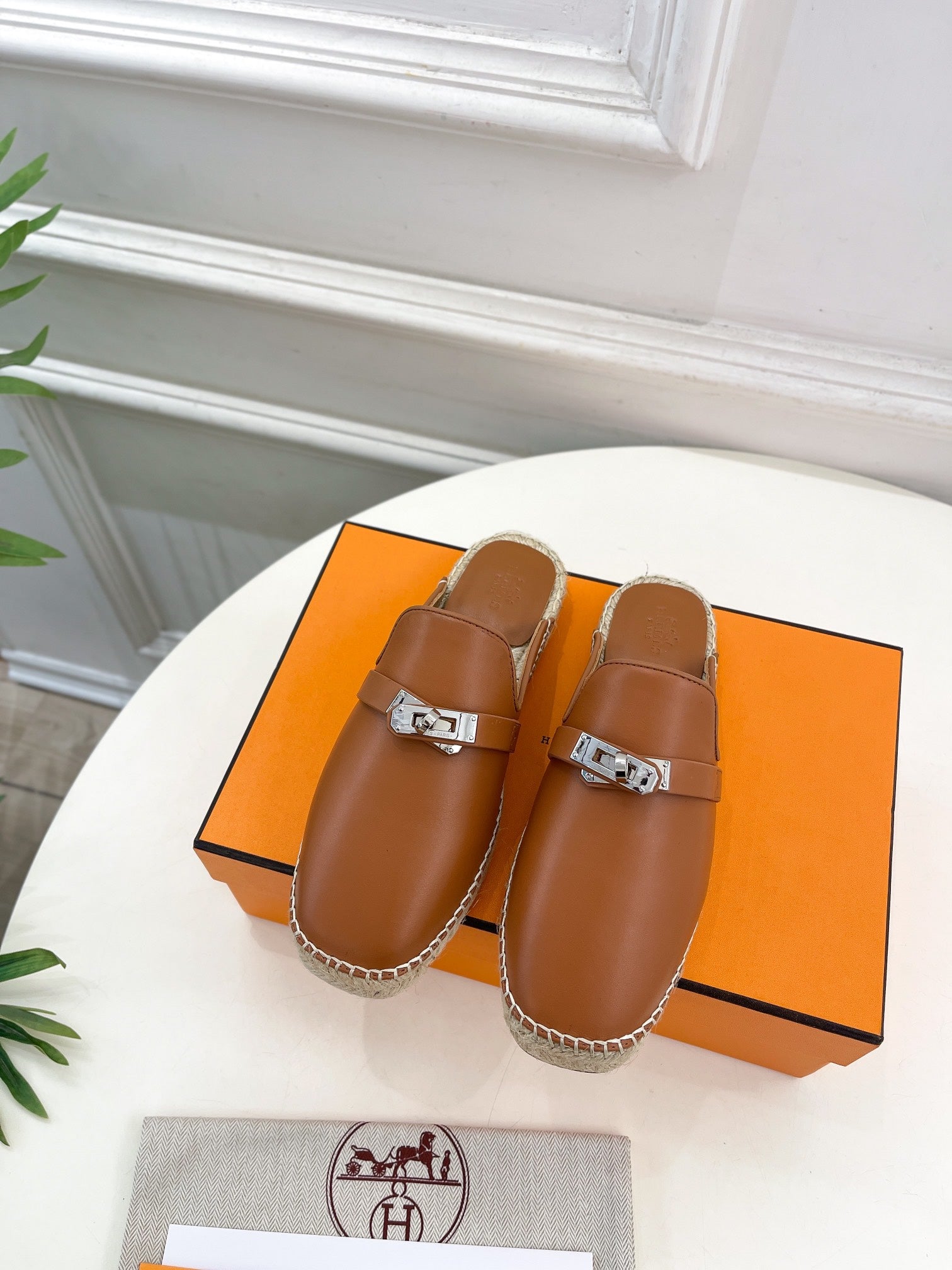 HM Lthea Espadrille Brown Calfskin And Jute Rope 969496