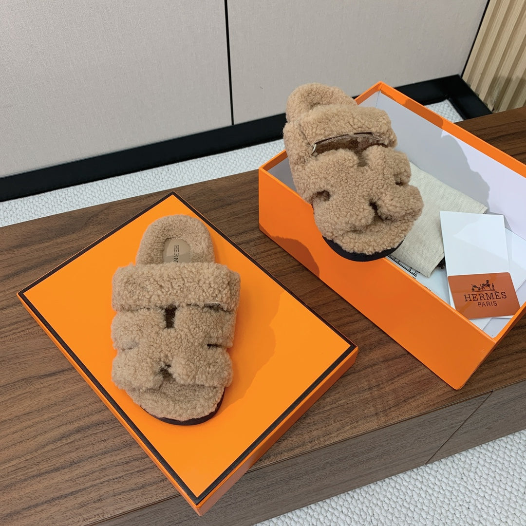 HM Chypre Sandal In Dark Beige Lamb Wool 984181