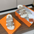 HM Chypre Sandal Light Brown Mix White Wool And Cowhide Lining 984209