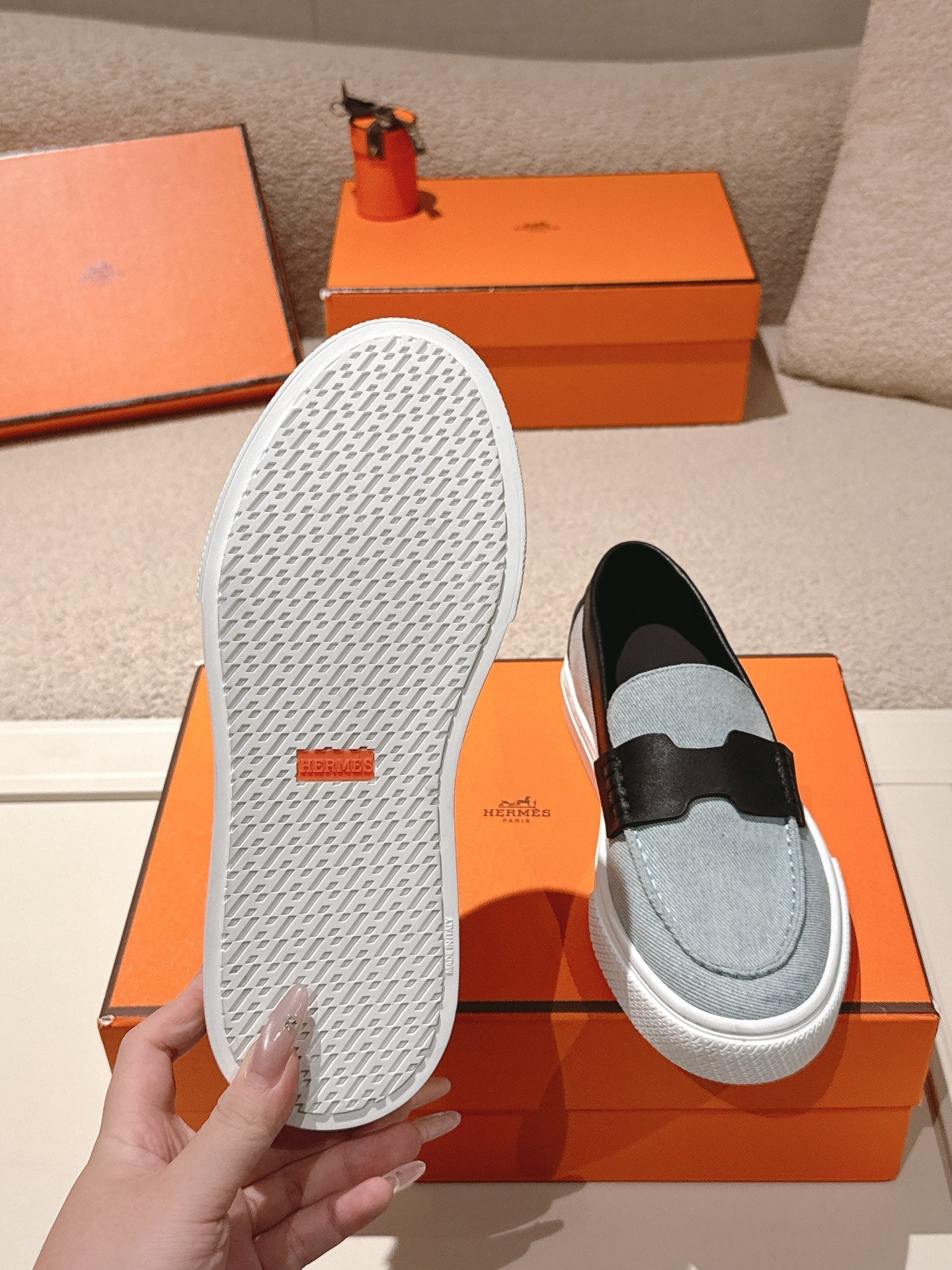 HM 25ss Platform Loafers Light Blue Black Denim Sheepskin 577168