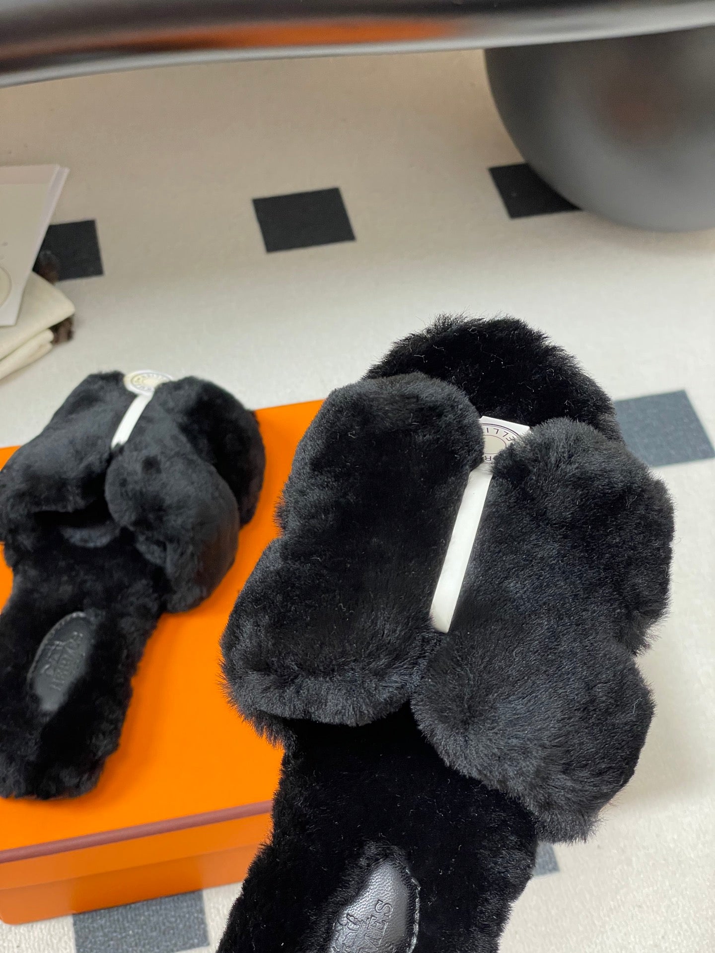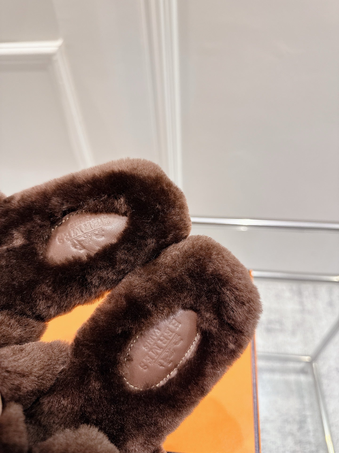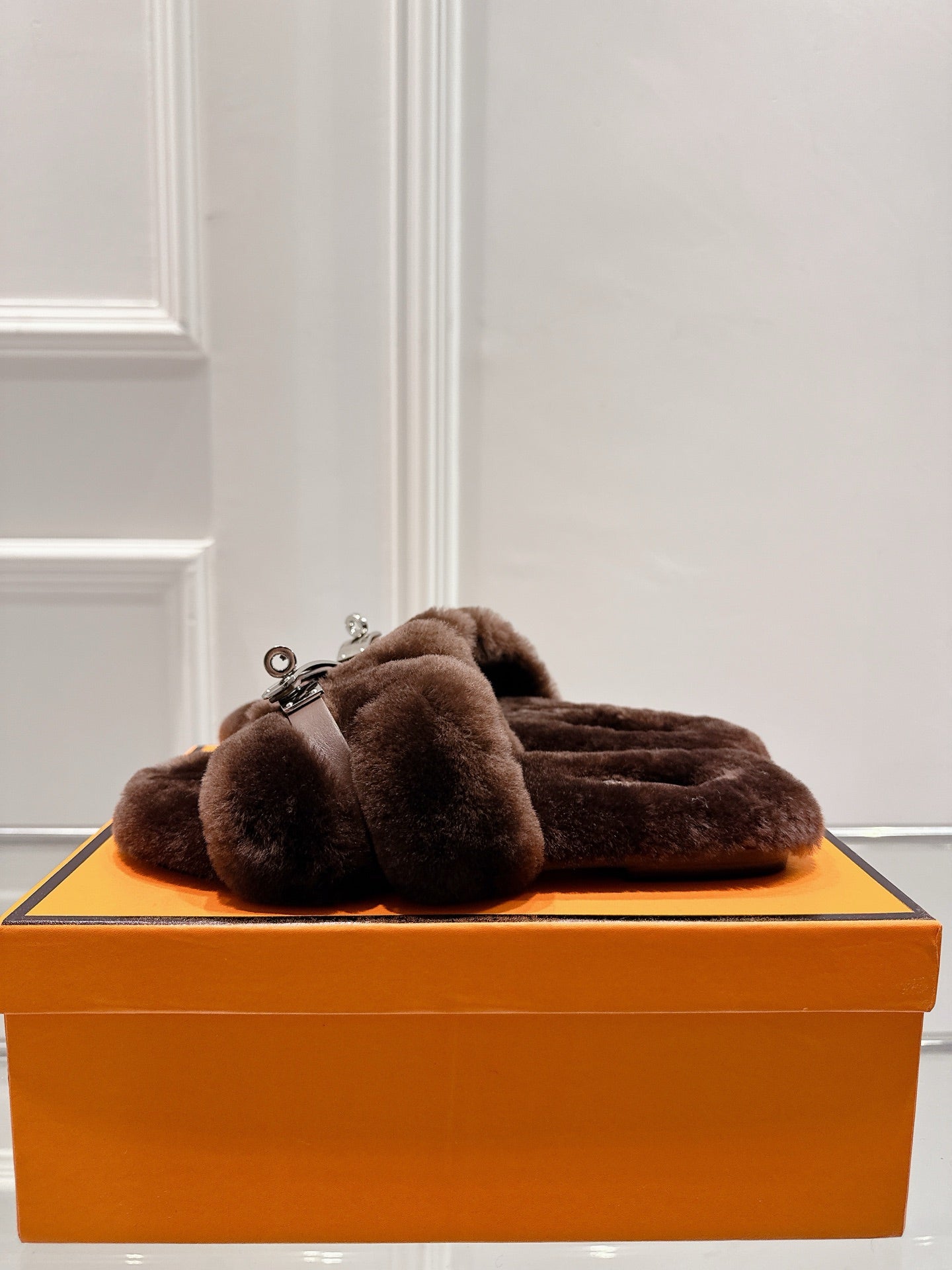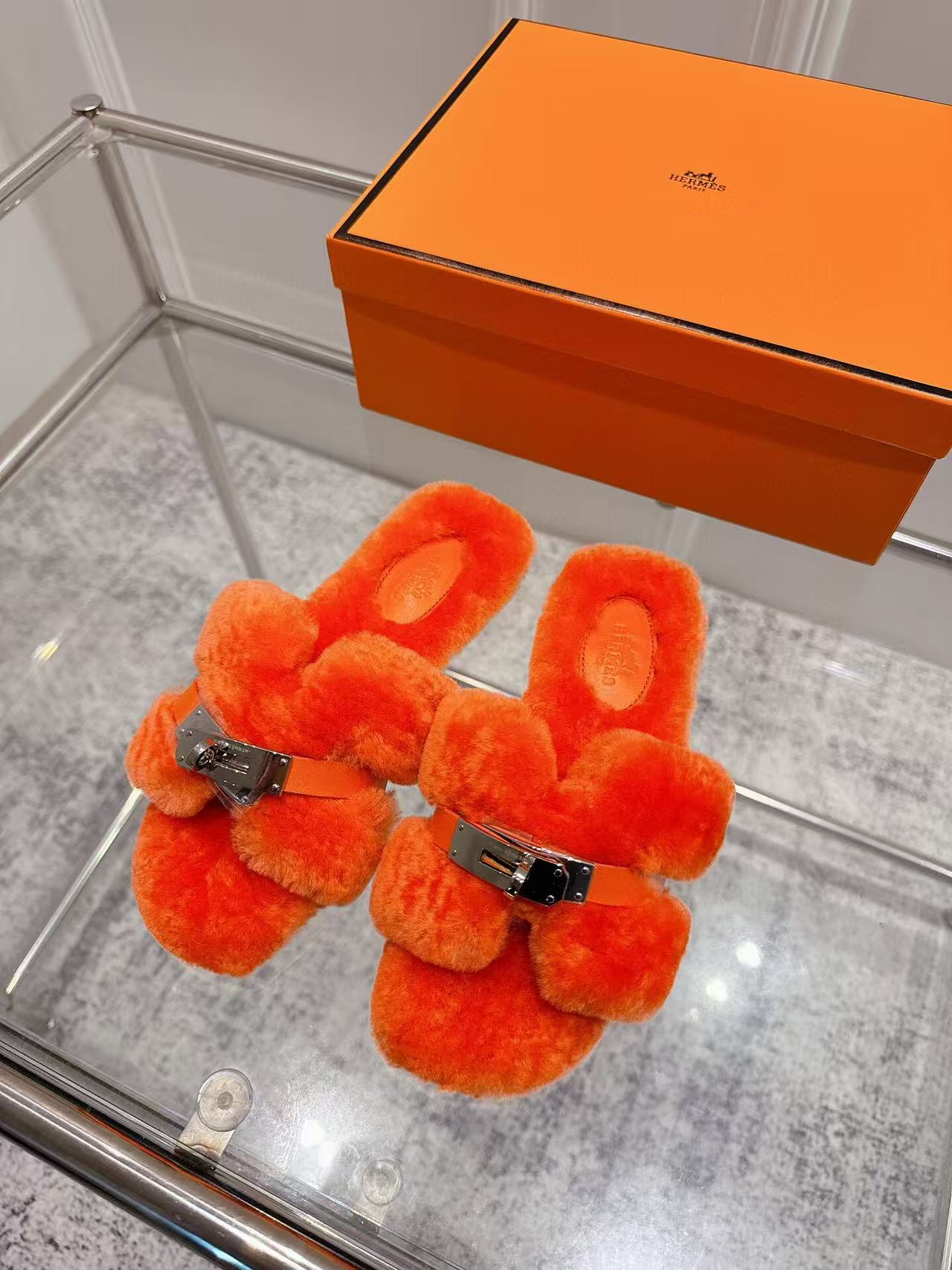 Hermes 2025 Oran Furry Slipper Orange Sheepskin Fur 422273