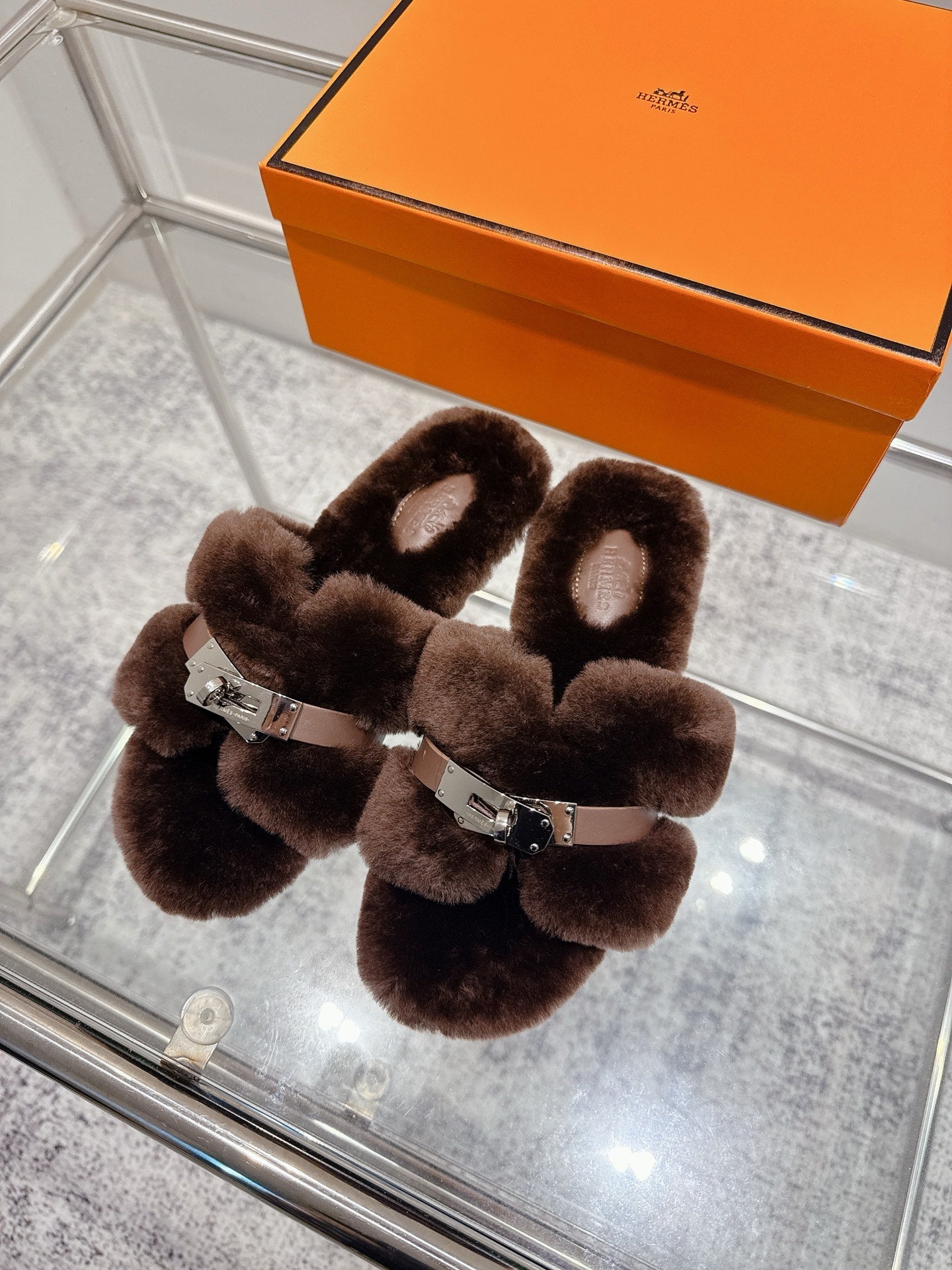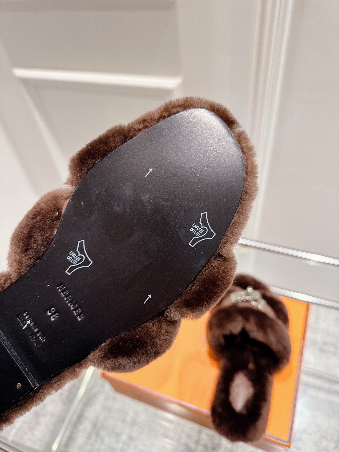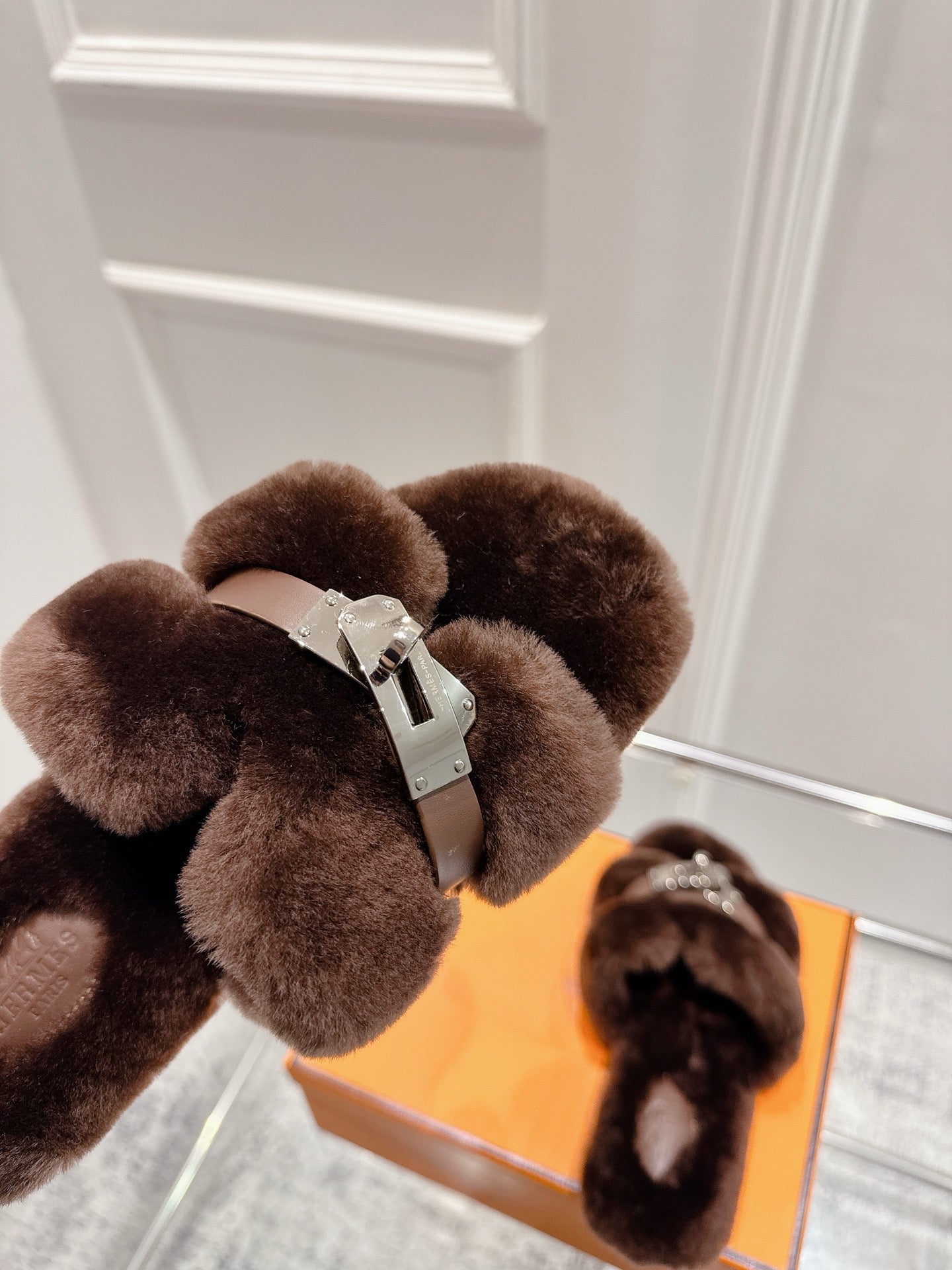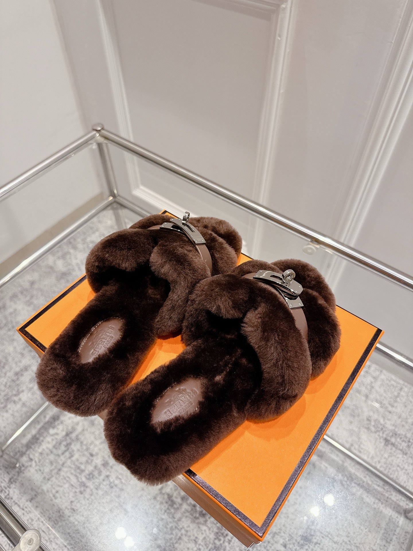 Hermes 2025 Oran Furry Slipper Orange Sheepskin Fur 422273
