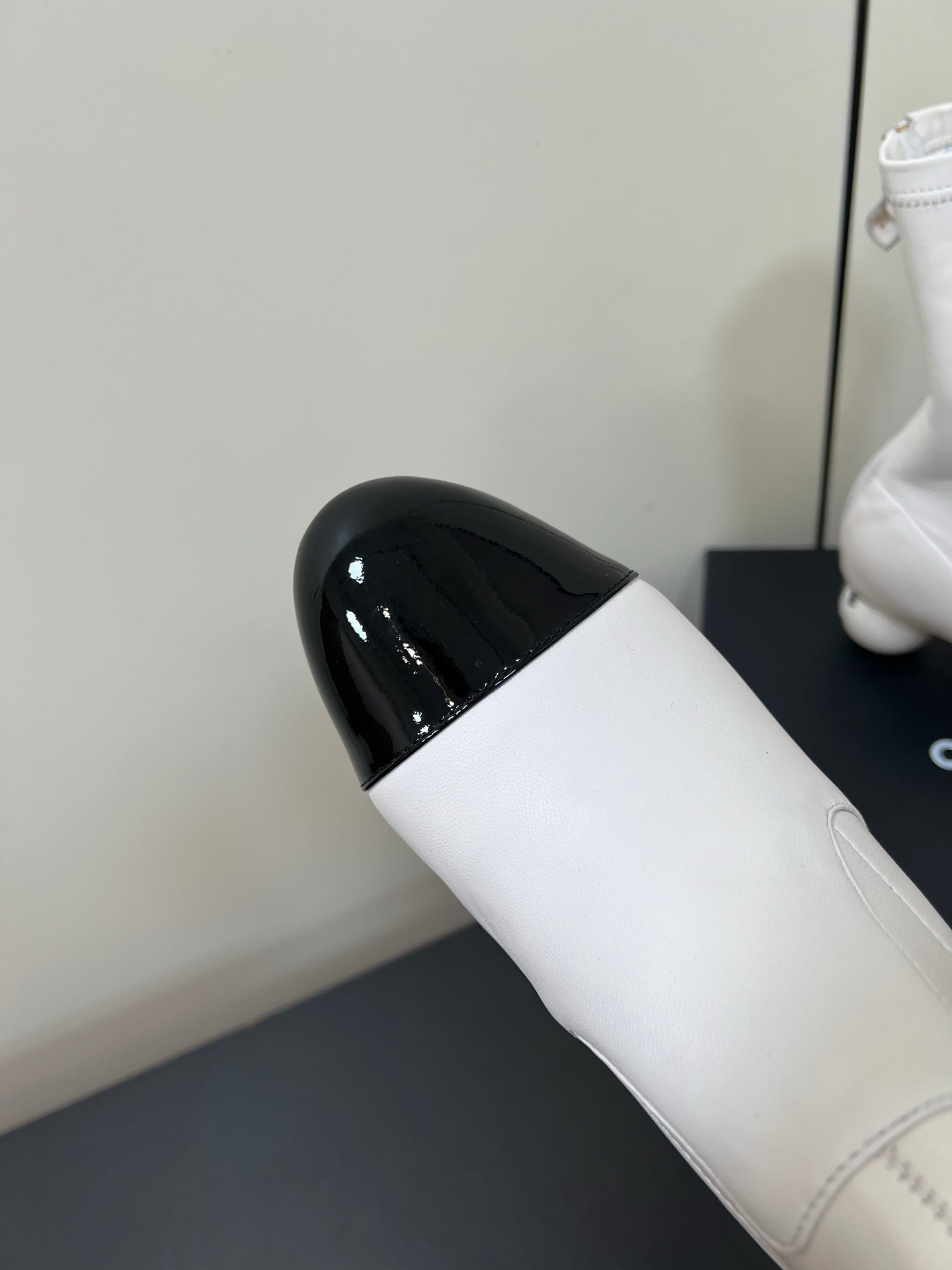 Chanel Double C Giant Pearl Heel Stretch Boots White Sheepskin 441706