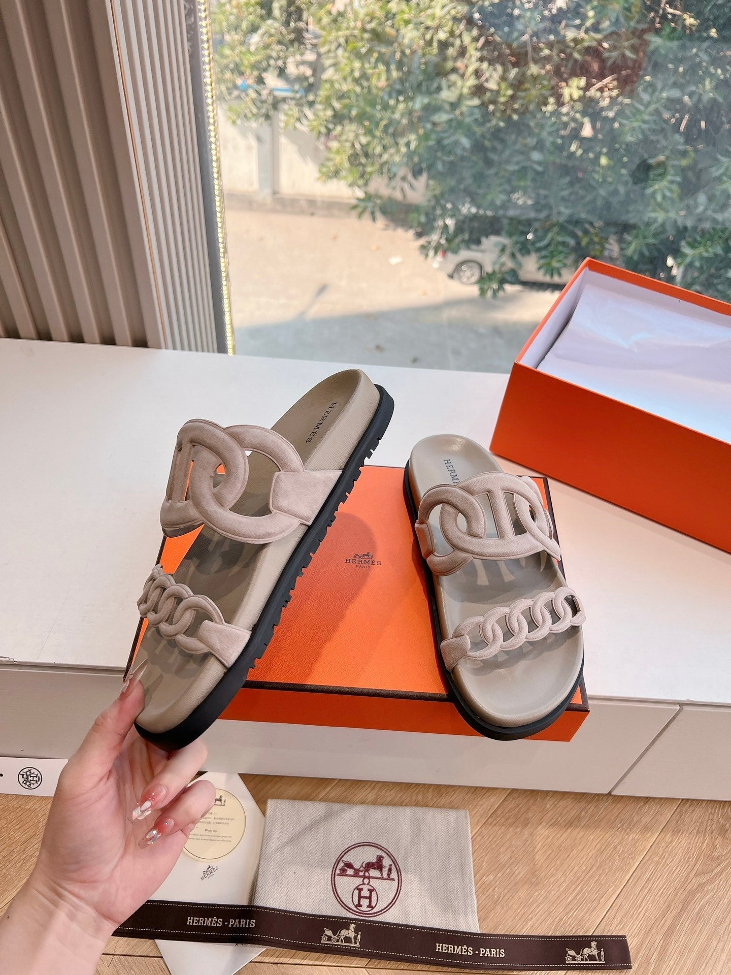 HM 25 Oran Sandal Gold Epsom Etoupe Calfskin