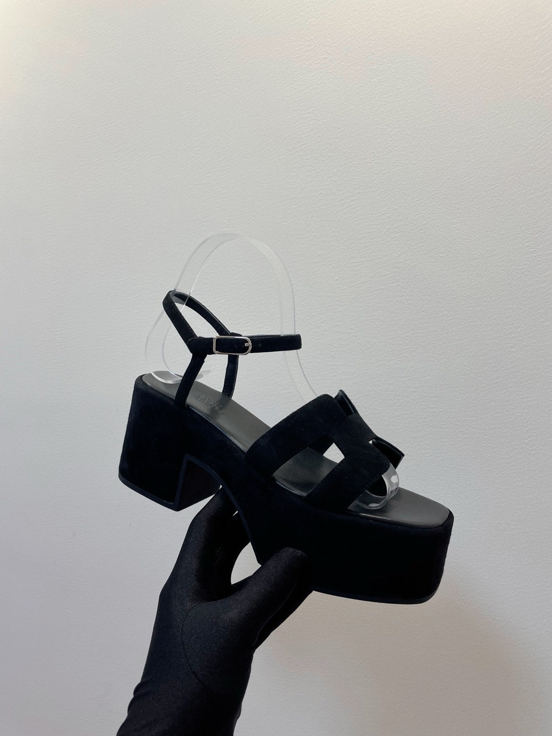 HM 25 Oran Sandal Black Calfskin Rhinestone
