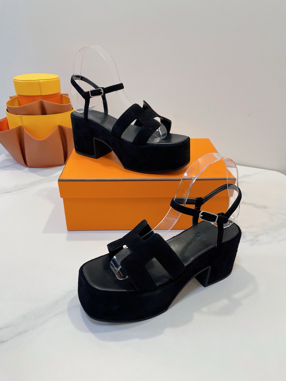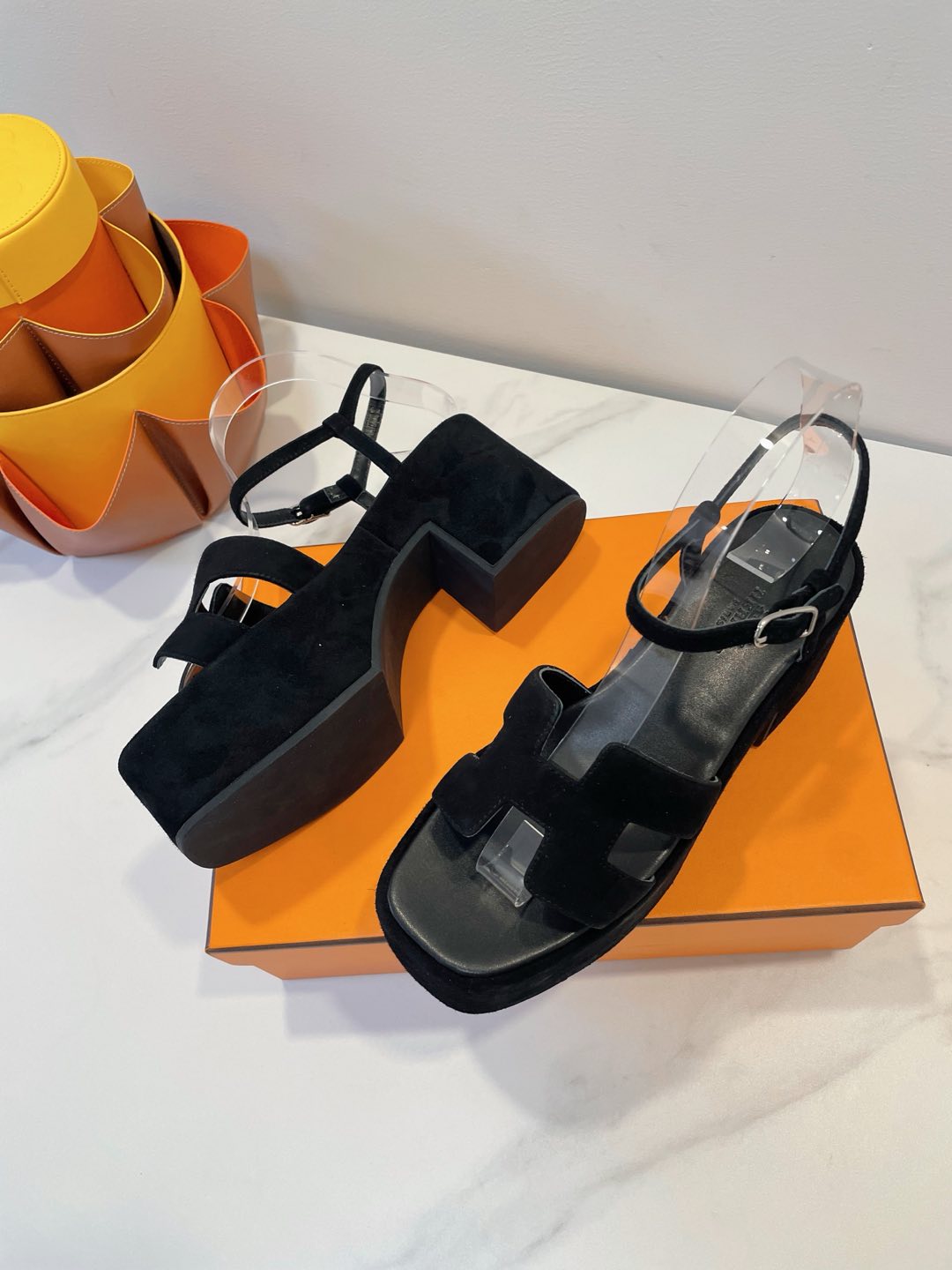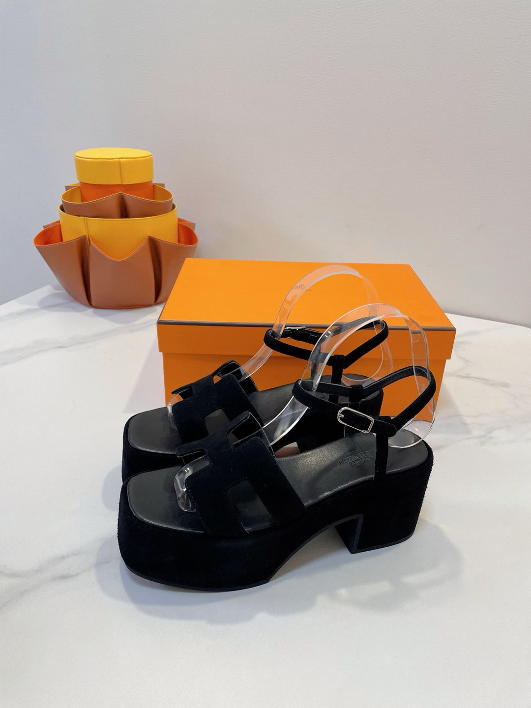 HM 25 Oran Sandal Black Calfskin Dark Blue Denim