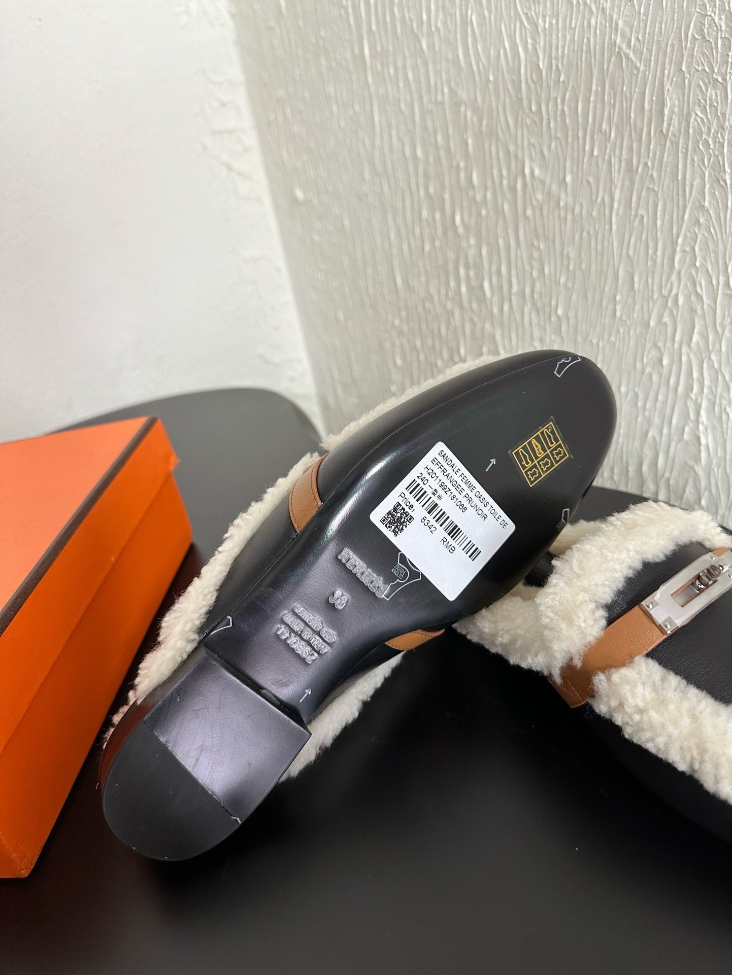 HM Buckle Tassel Mule Black Goat Leather 348025