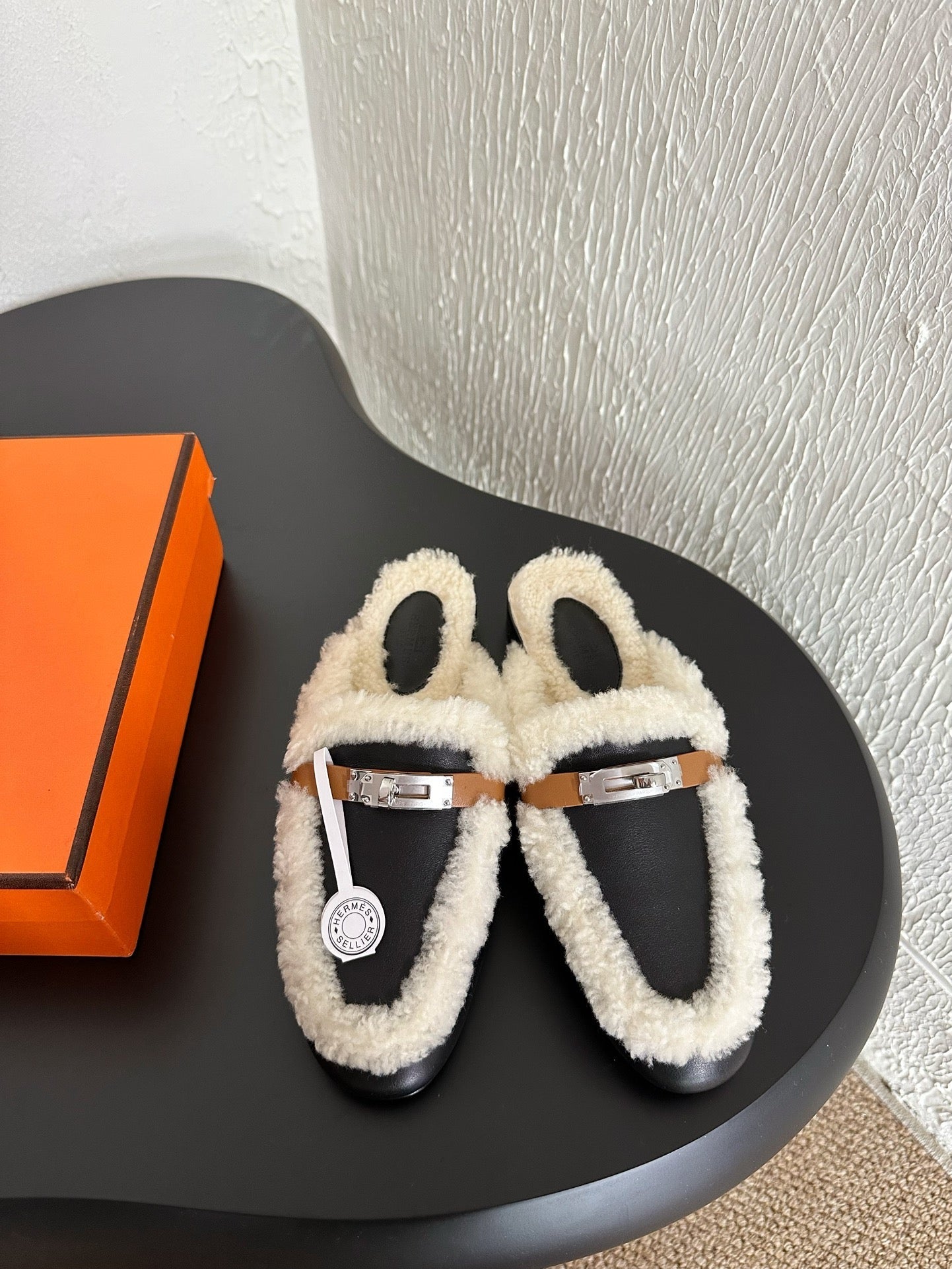 HM Oz Mule Black Mix White Lambskin Lined With Wool Fleece 961093