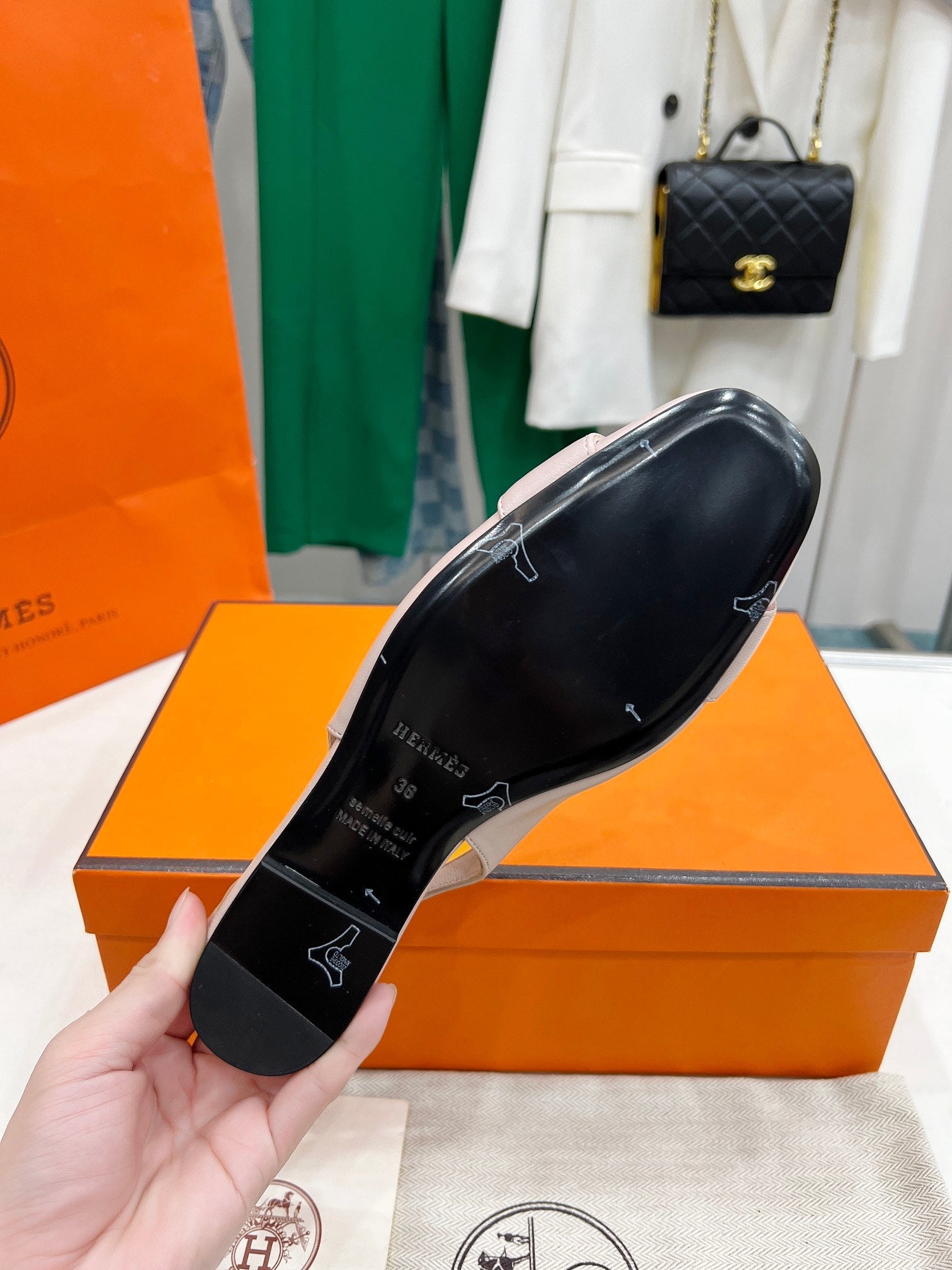 H-BUCKLE BALLLET FLAT LIGHT PINK CALFSKIN