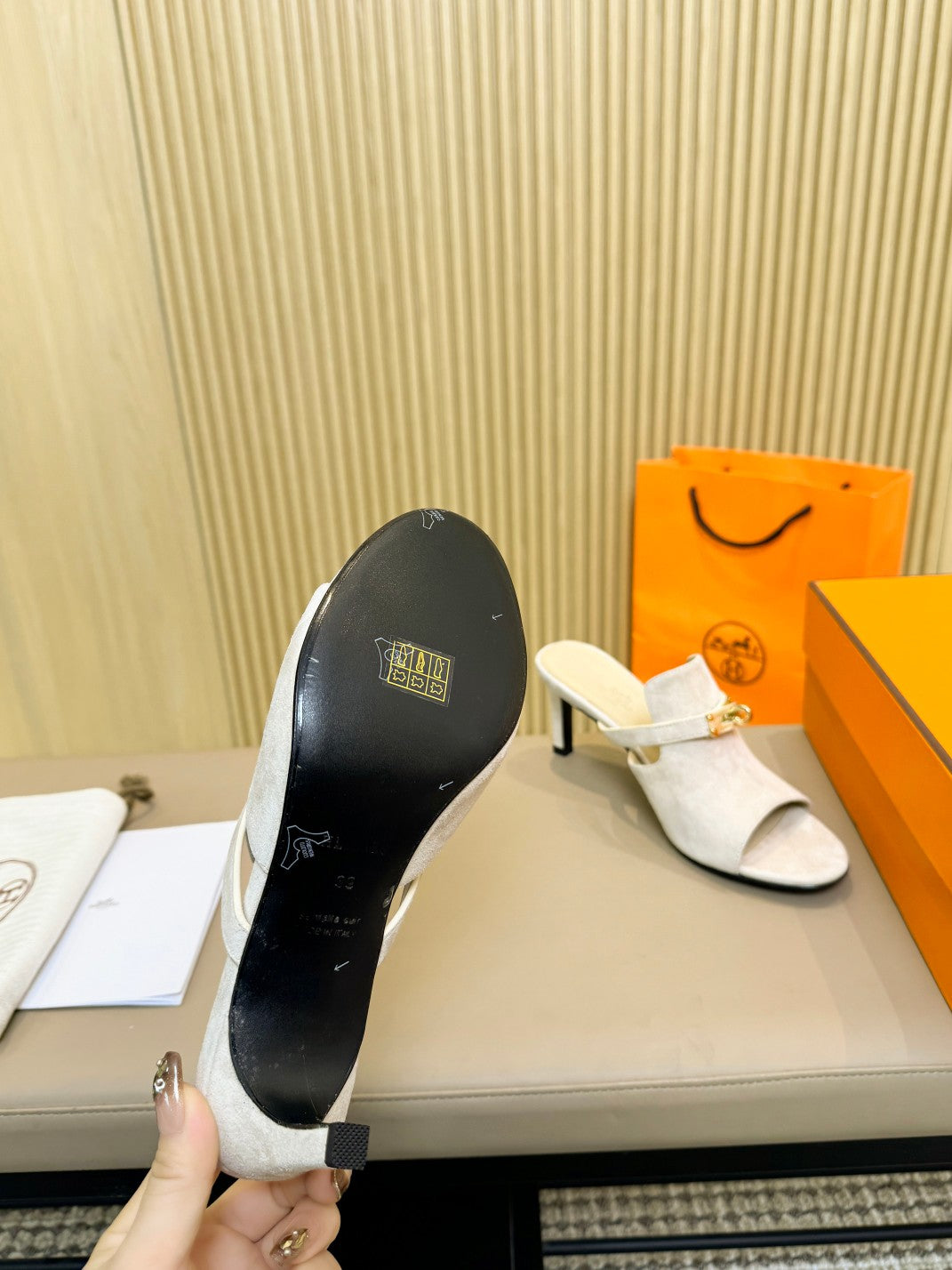HEDEN MULE 80 WHITE CALFSKIN WITH PATTERN