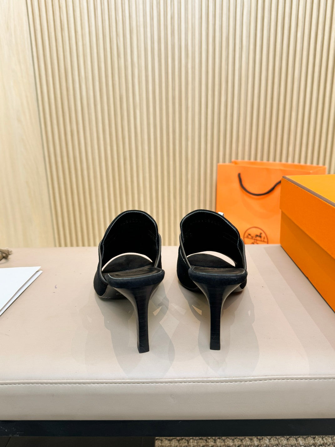 HEDEN MULE 80 BLACK CALFSKIN WITH PATTERN