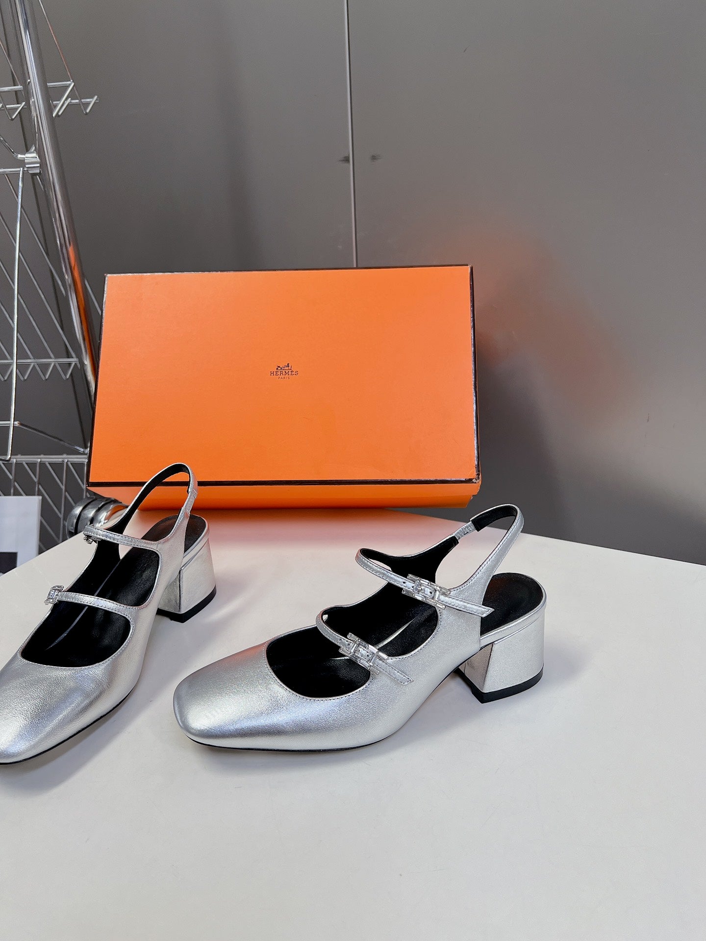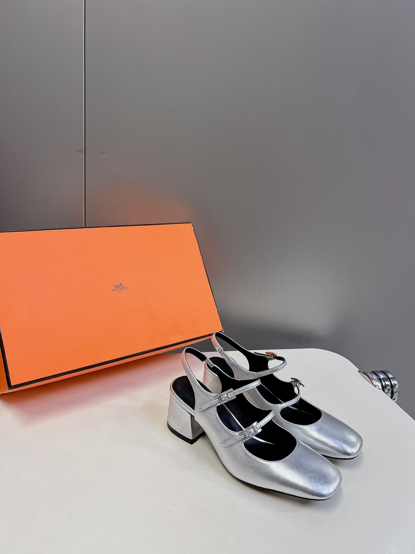 SQUARE TOE SLINGBACK SNOW CALFSKIN