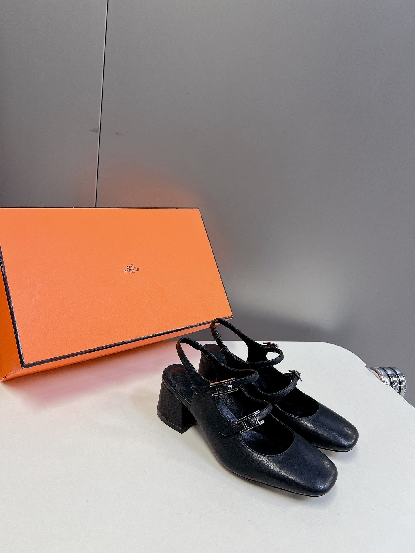 SQUARE TOE SLINGBACK BLACK CALFSKIN