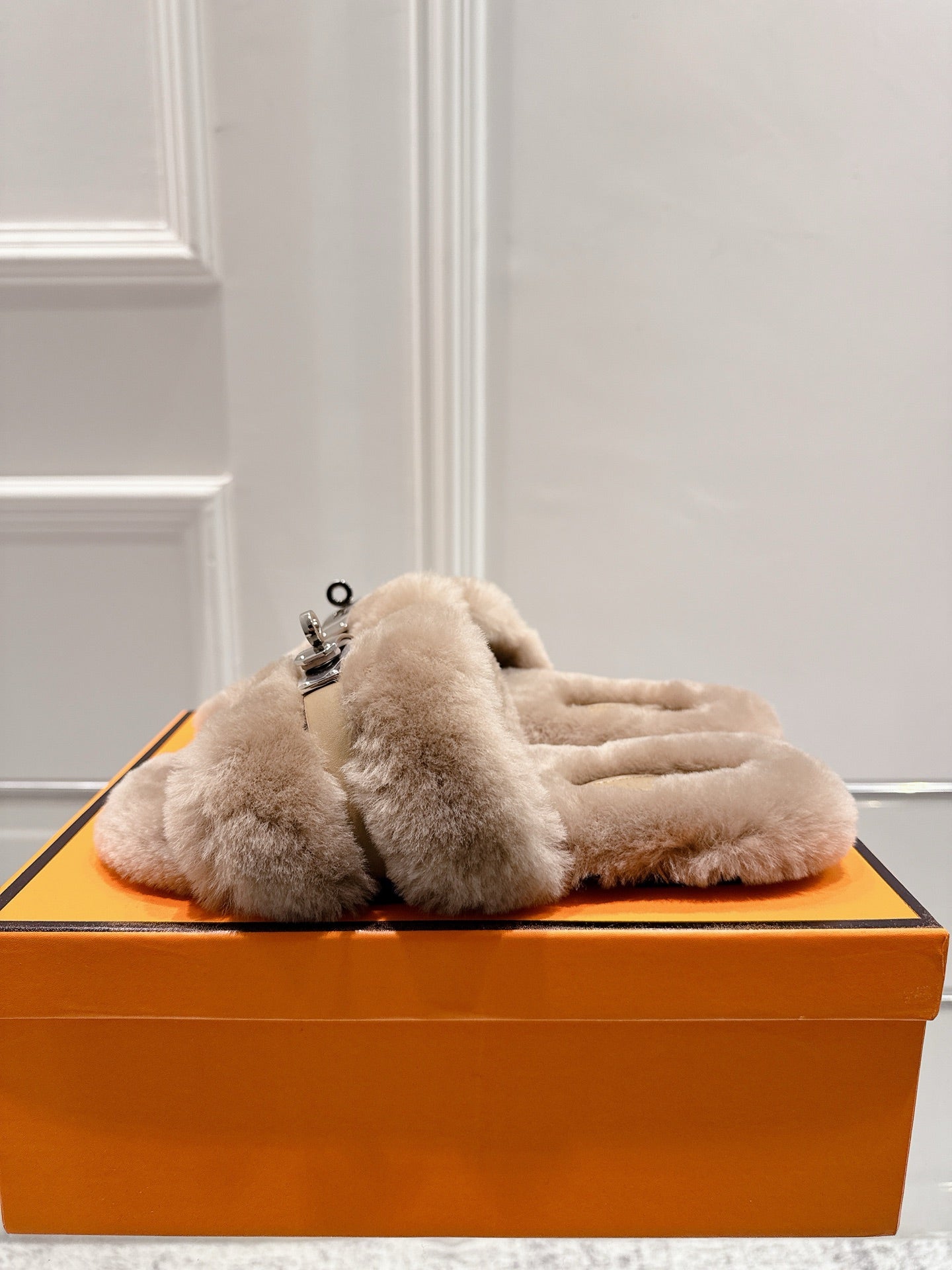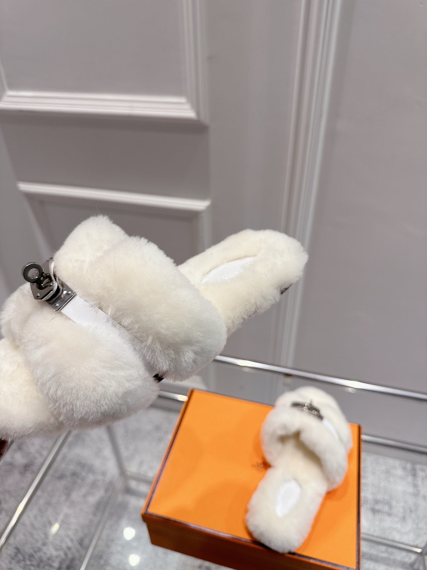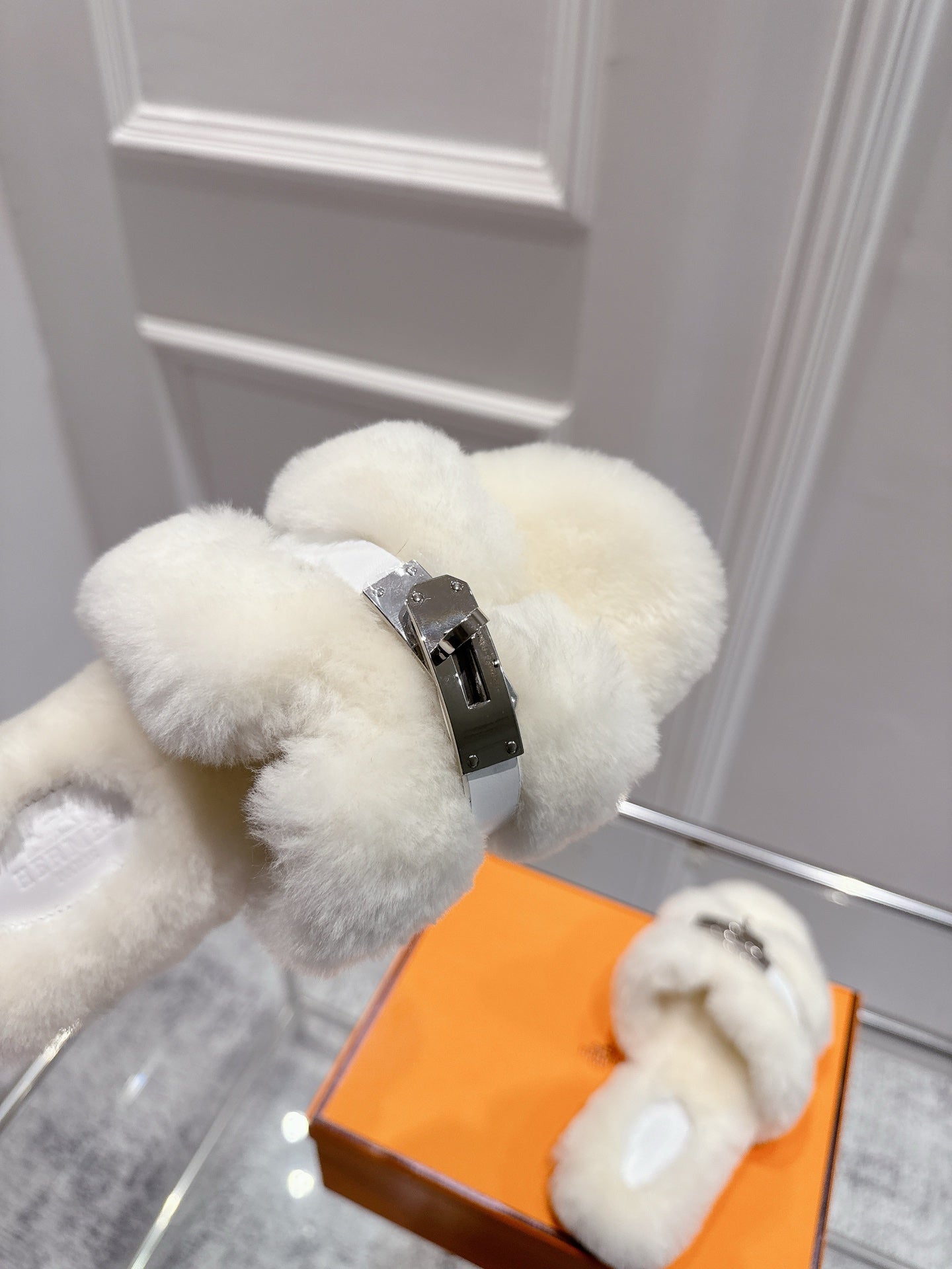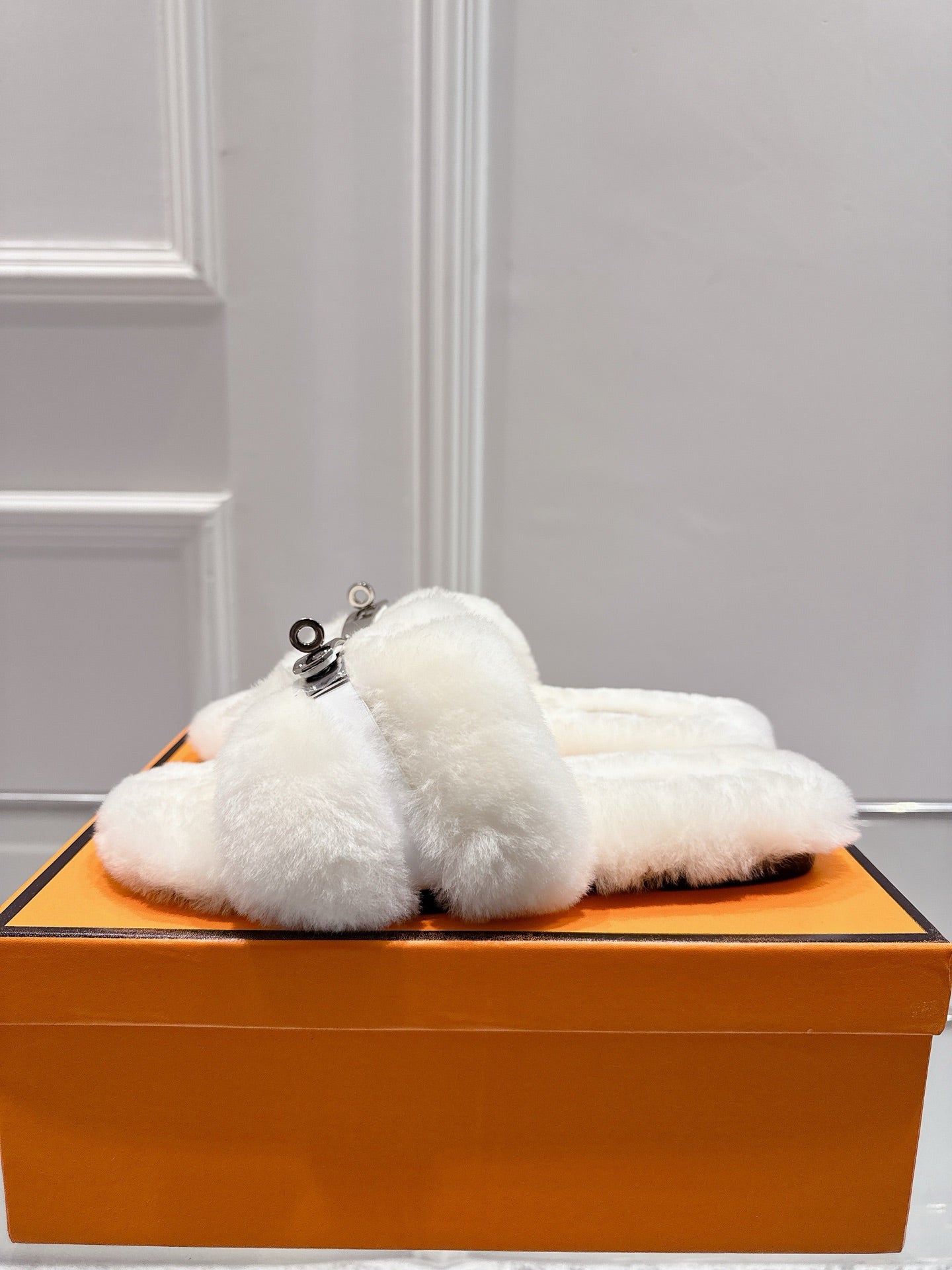 HM Oran slippers sliver buckle white wool