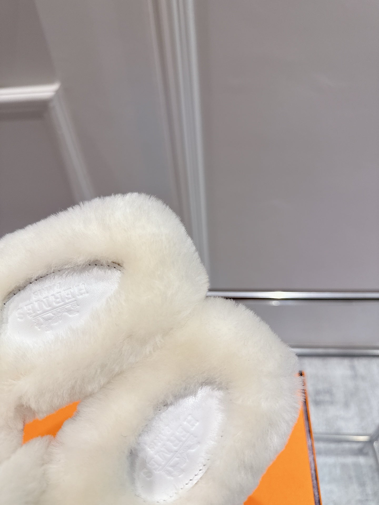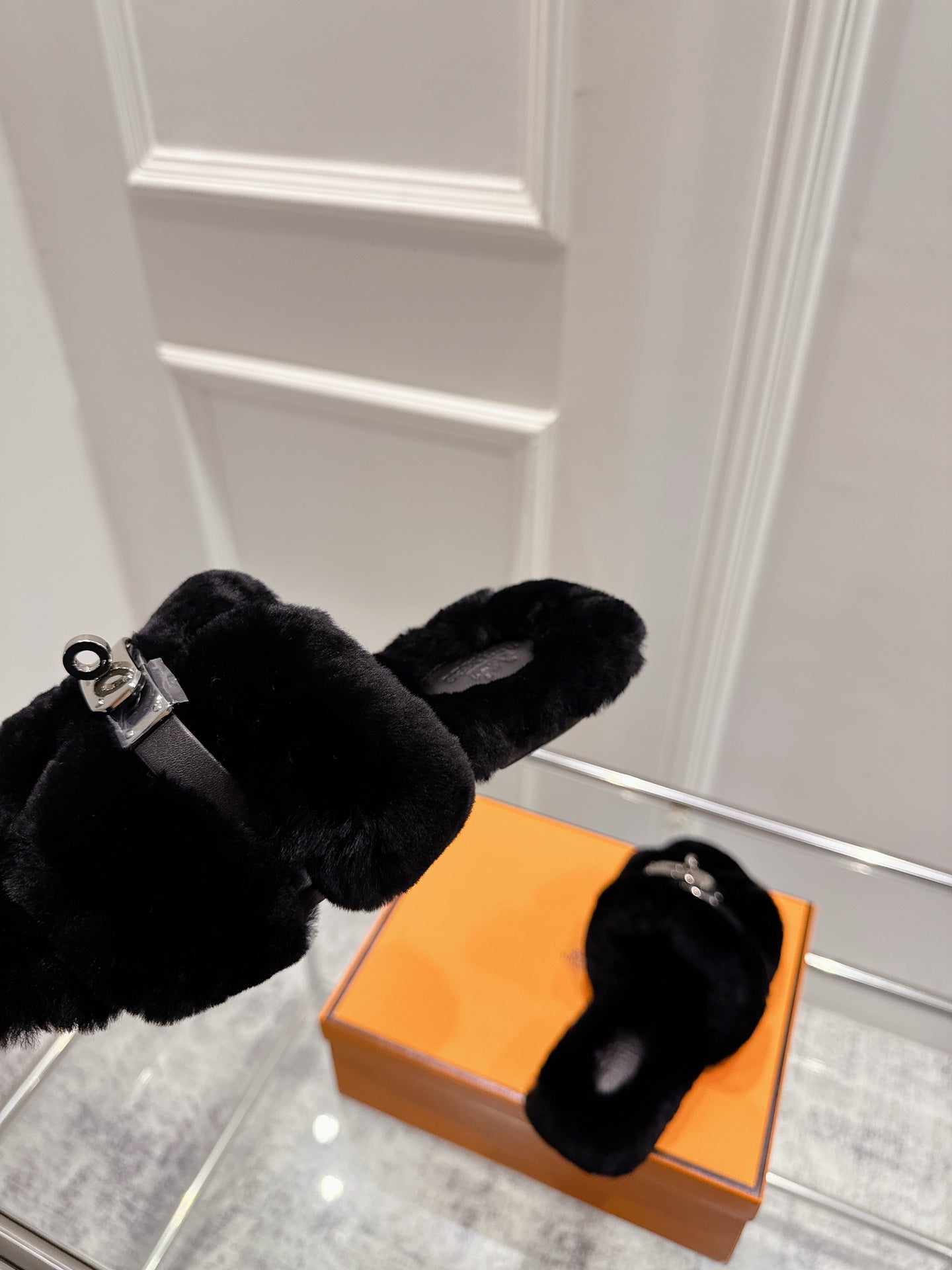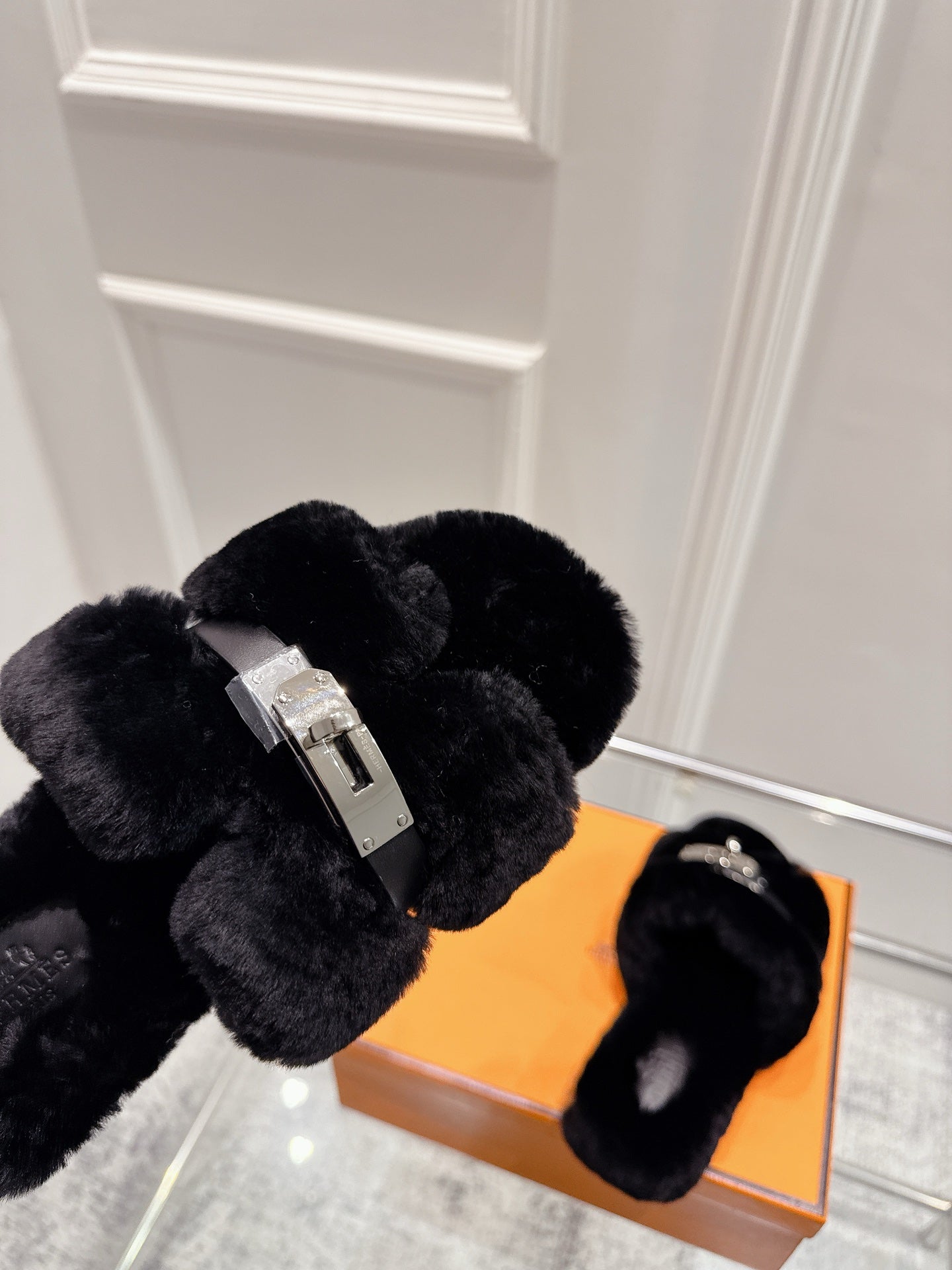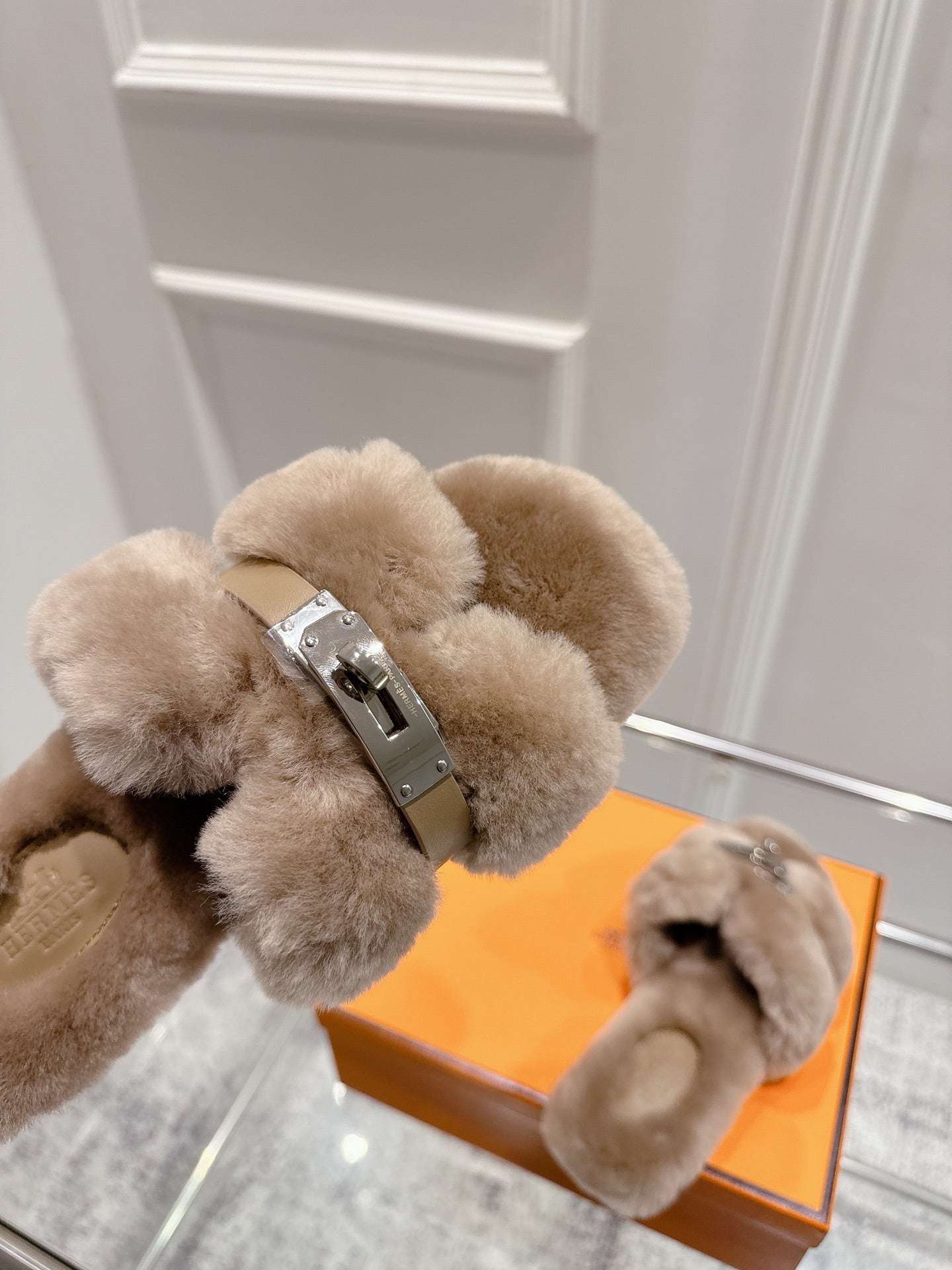 HM Oran slippers sliver buckle white wool