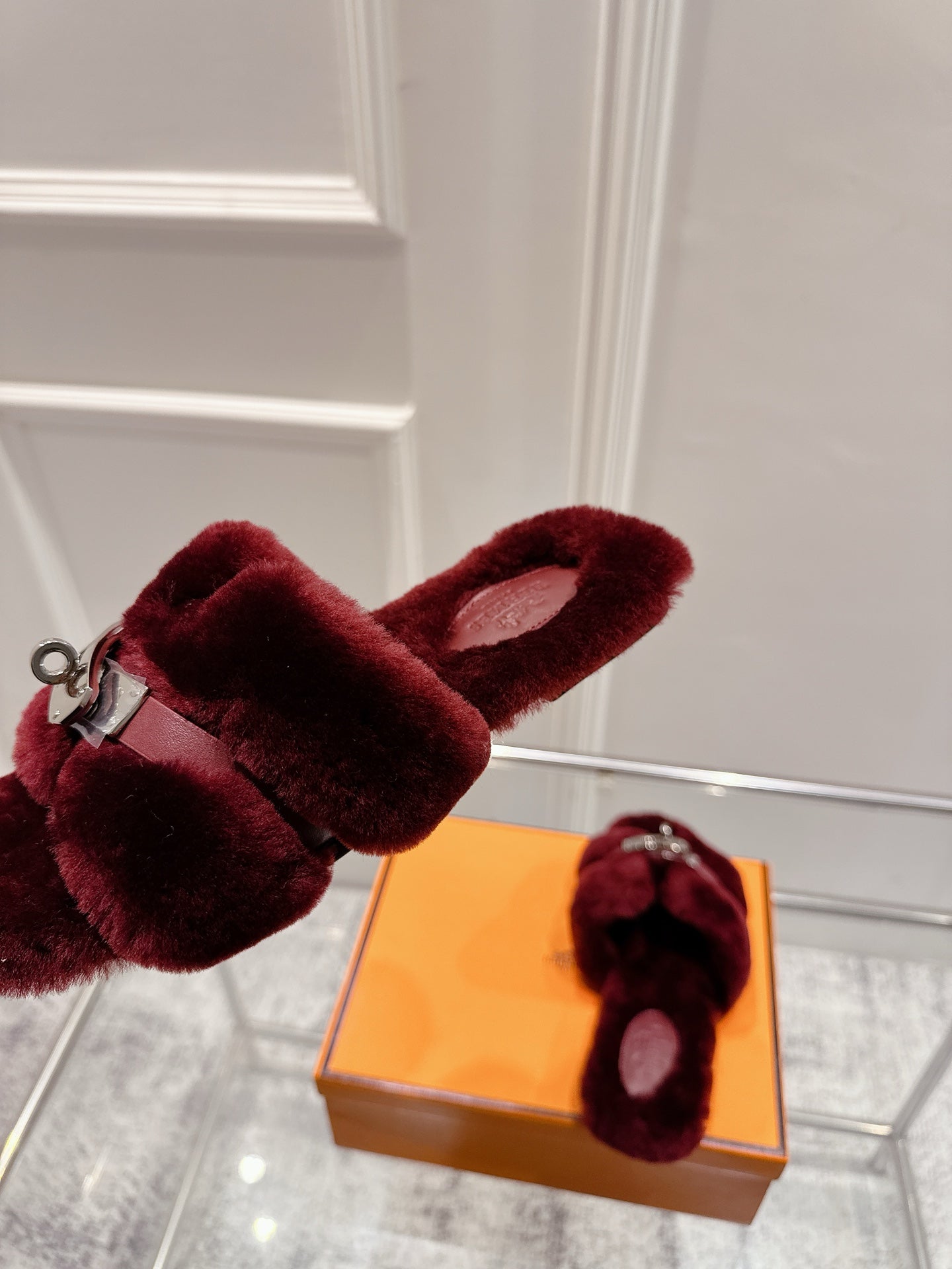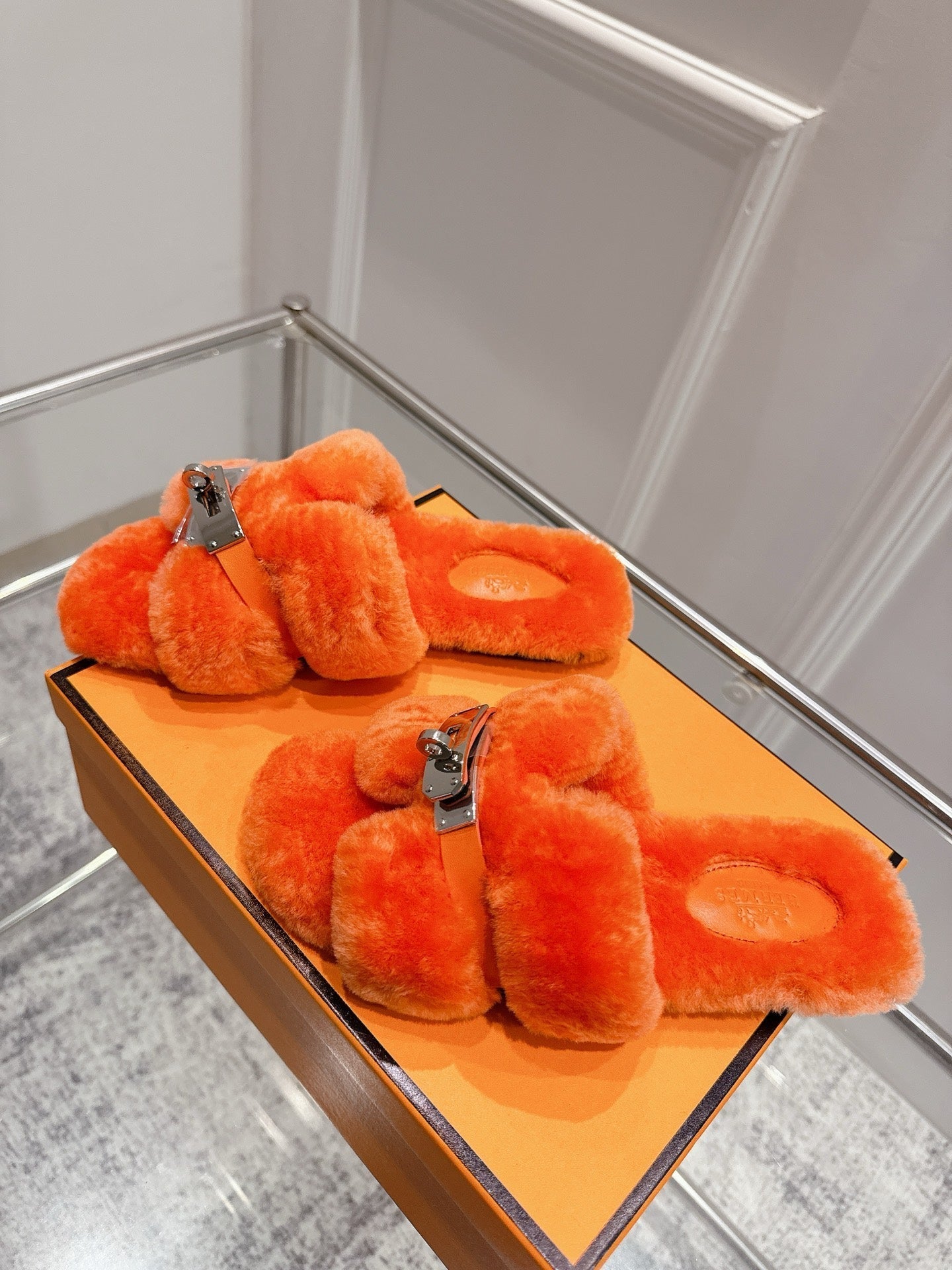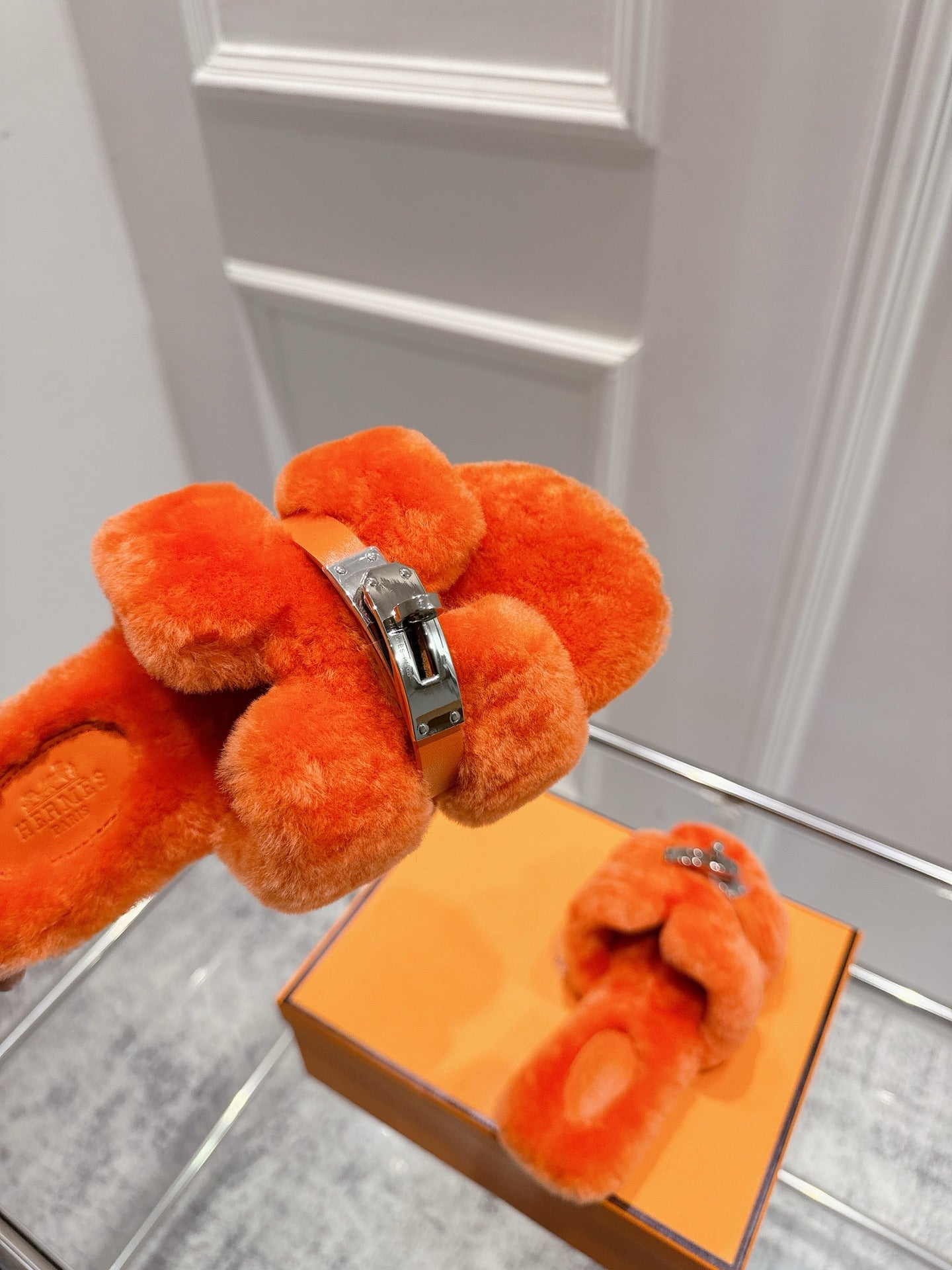 HM Oran slippers sliver buckle orange wool