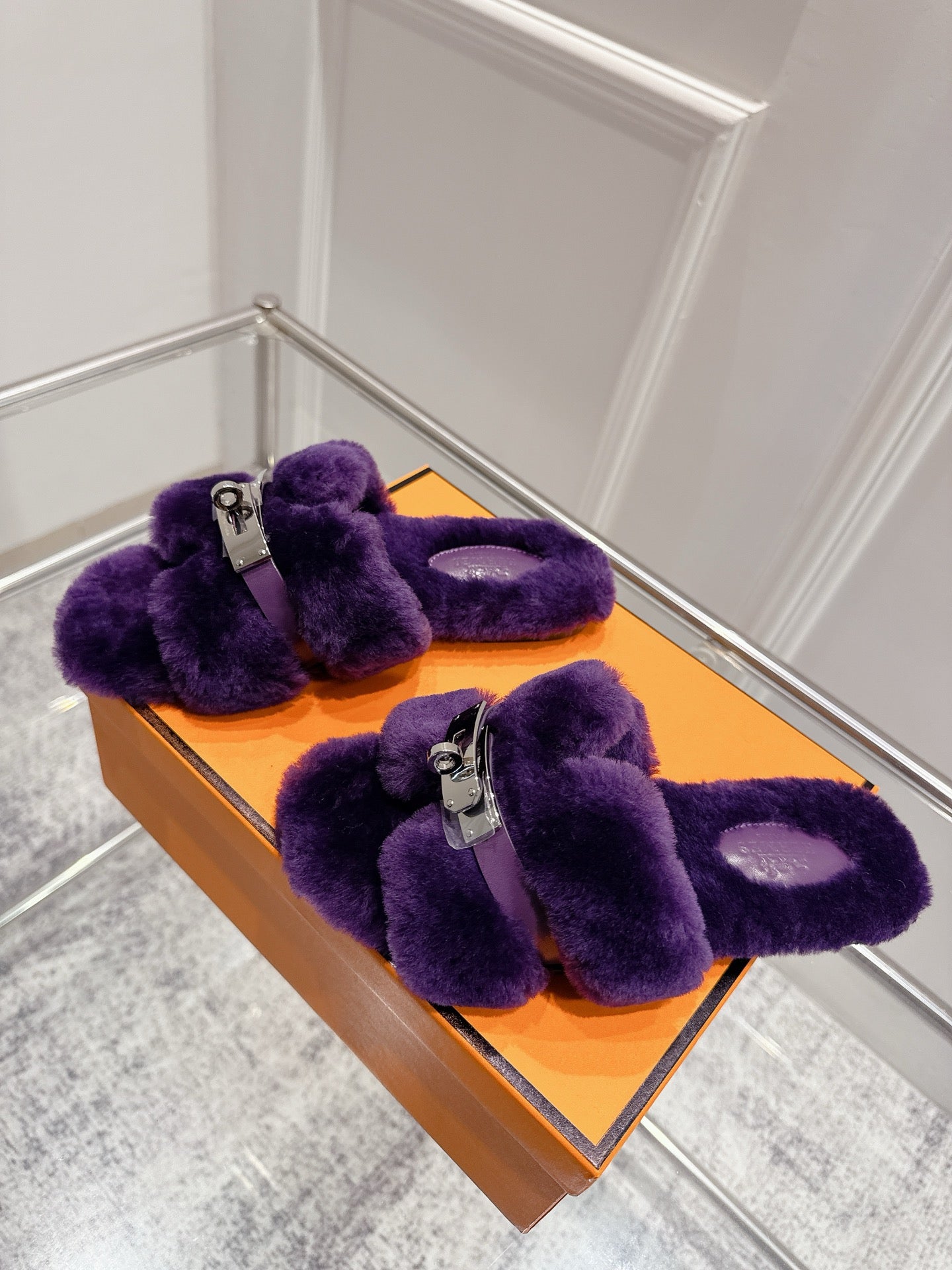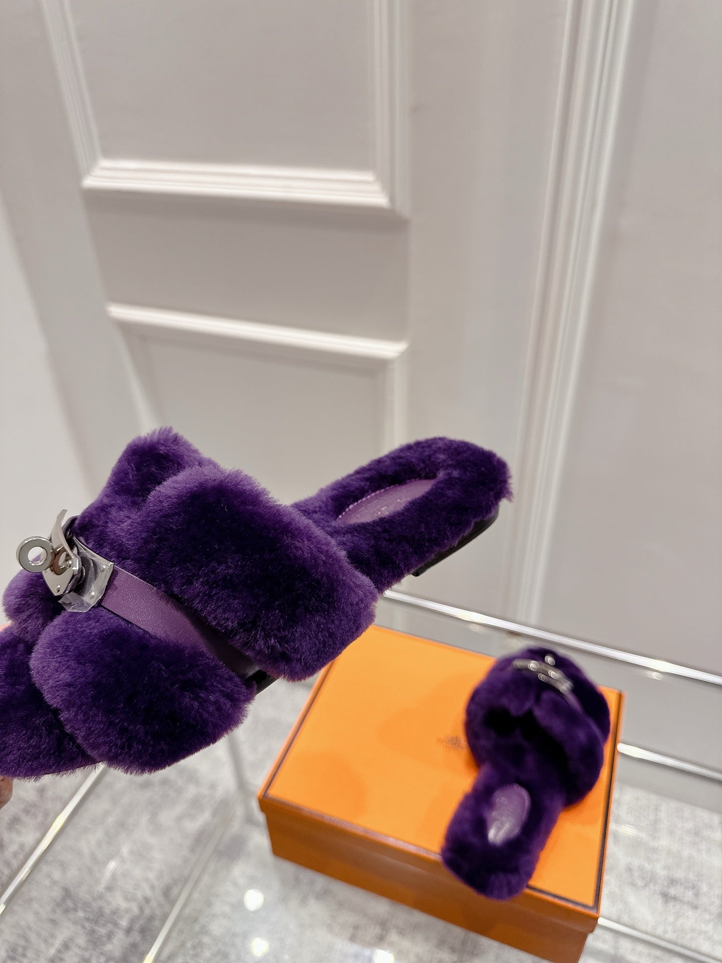 HM Oran slippers sliver buckle purple wool