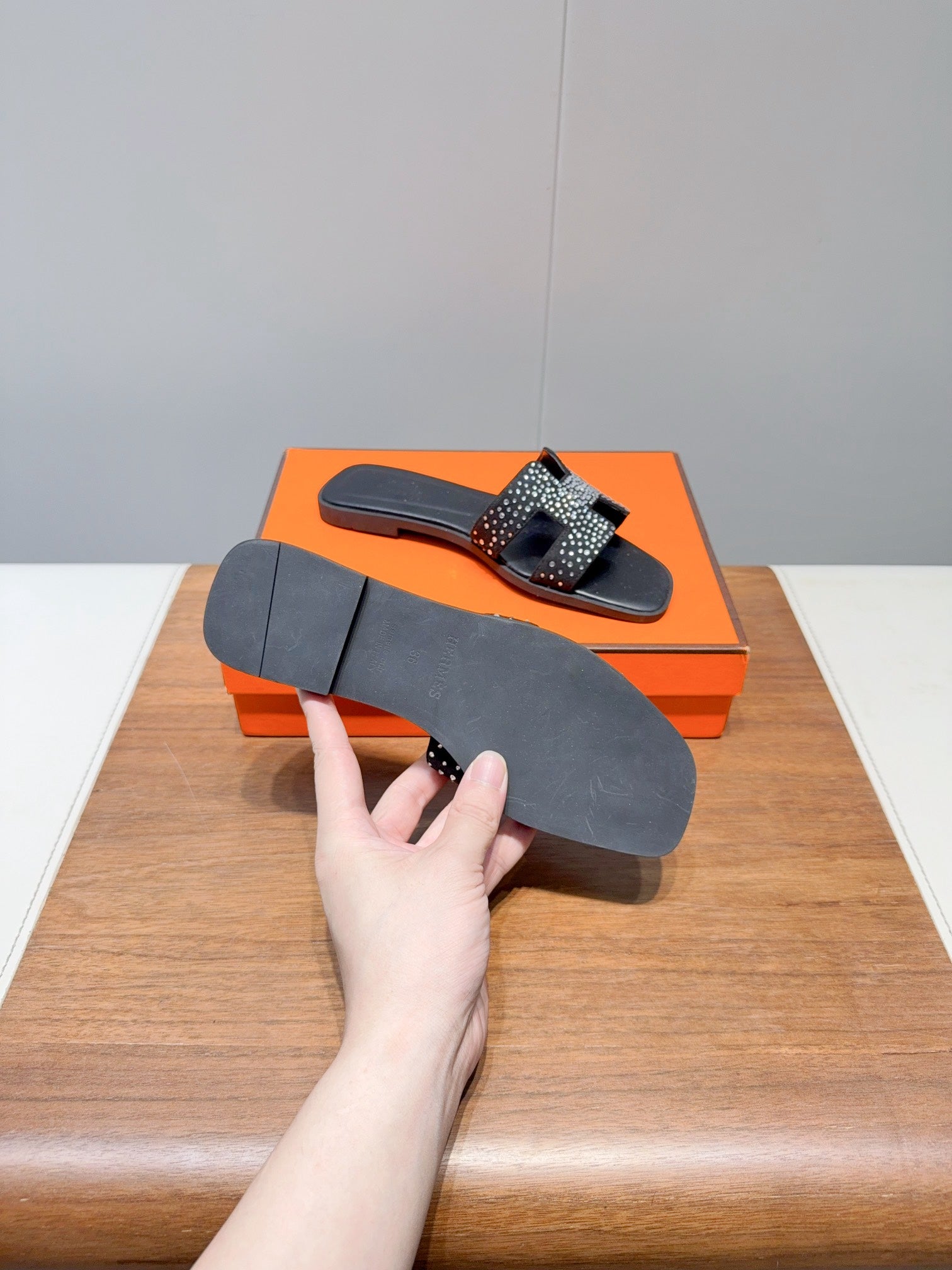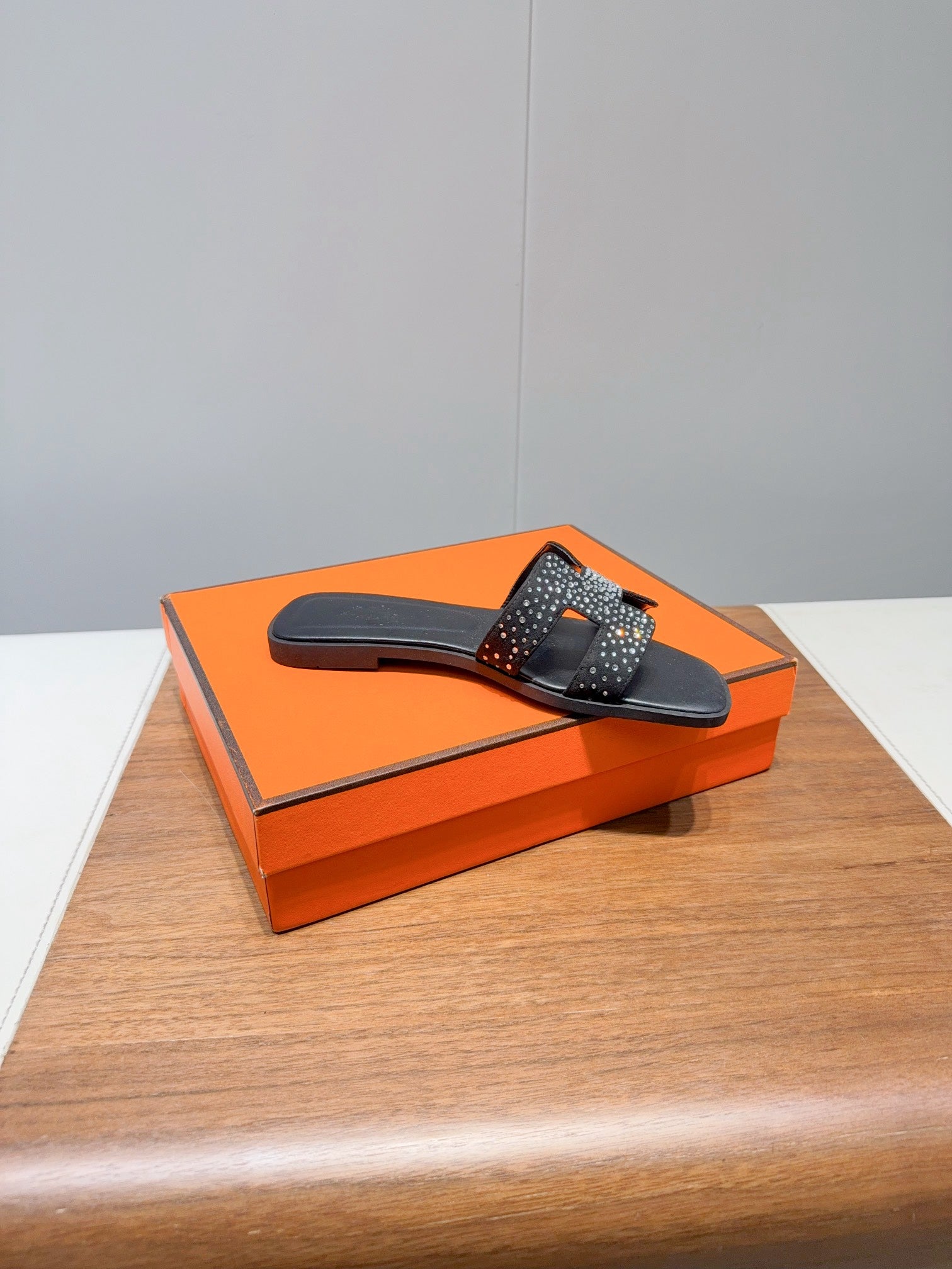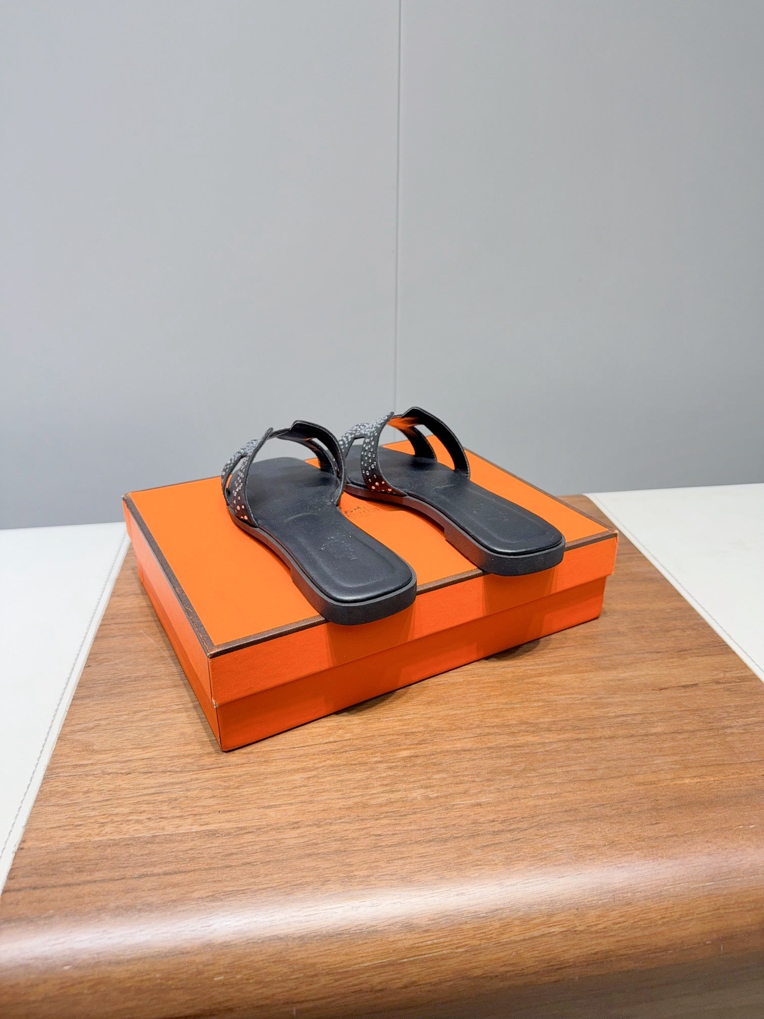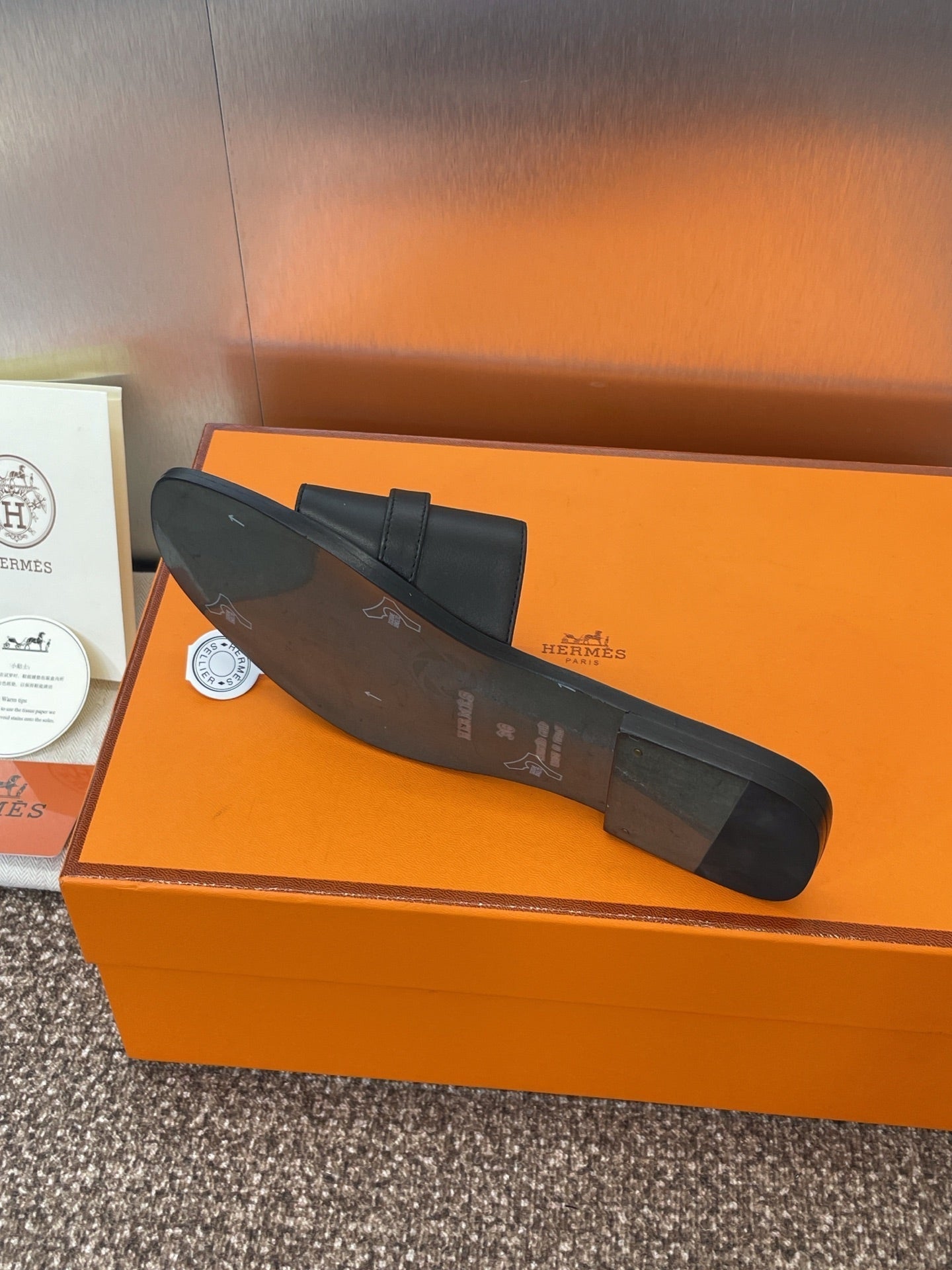 HM OZ Mule Denim Black Brown Cowhide 756853
