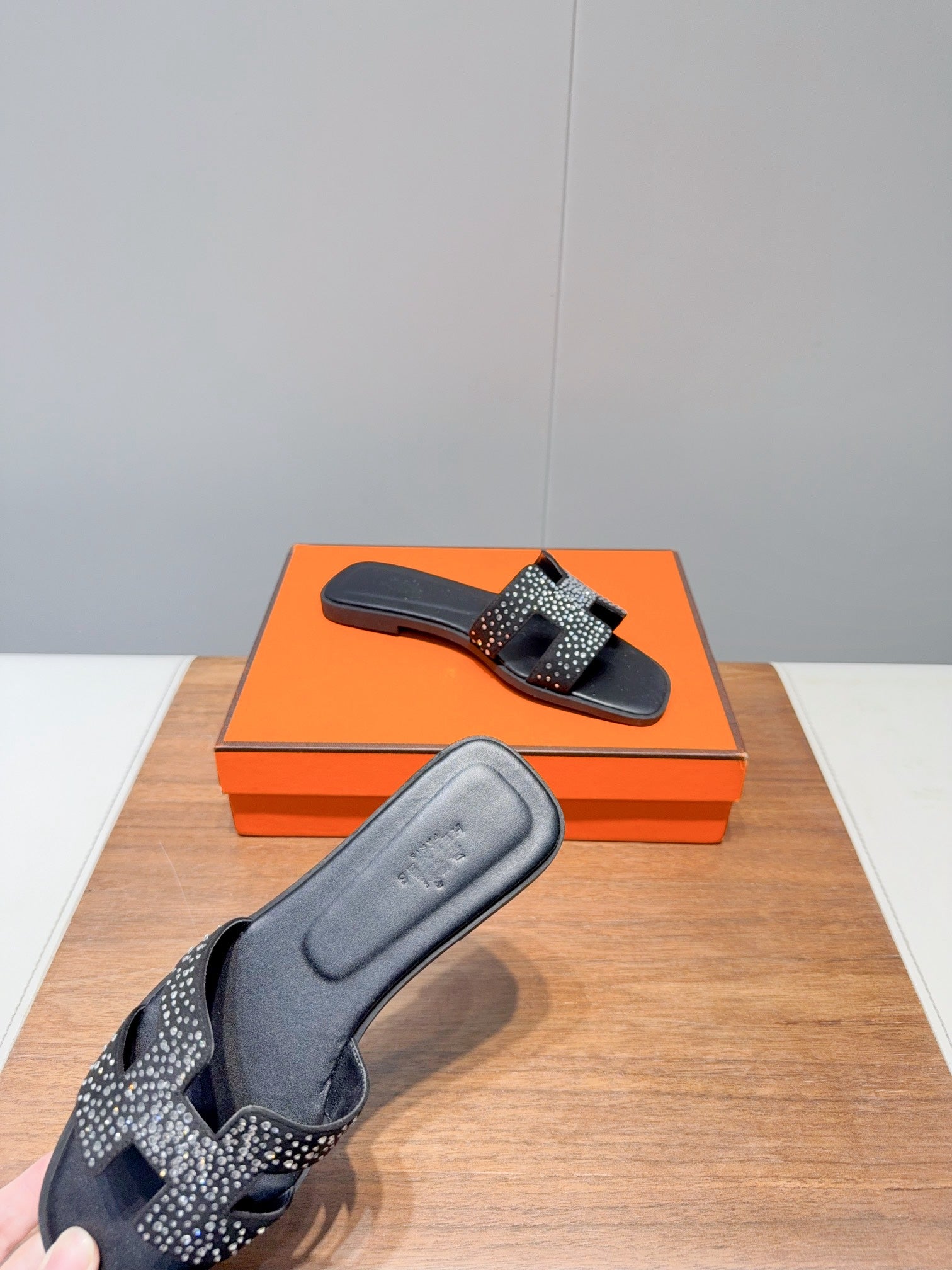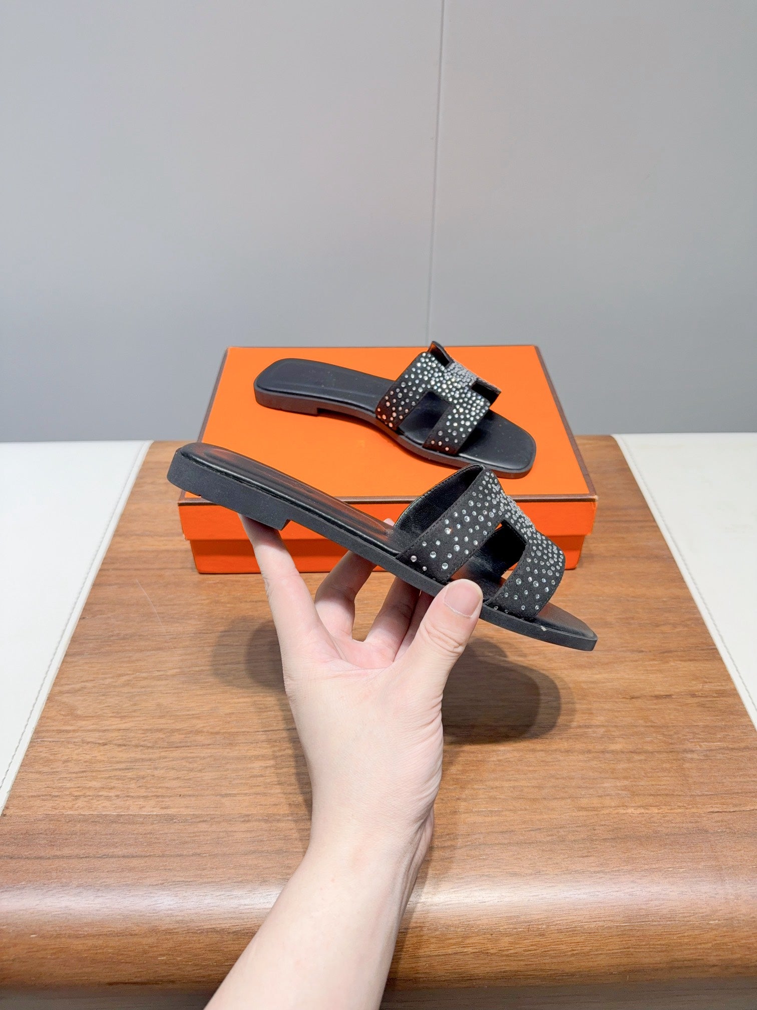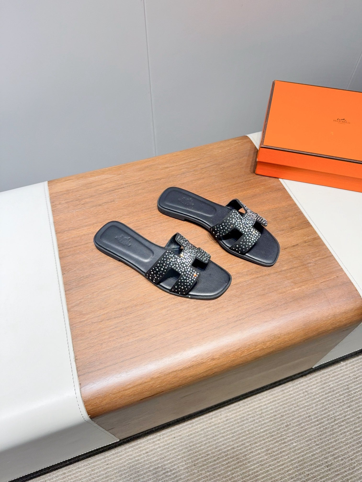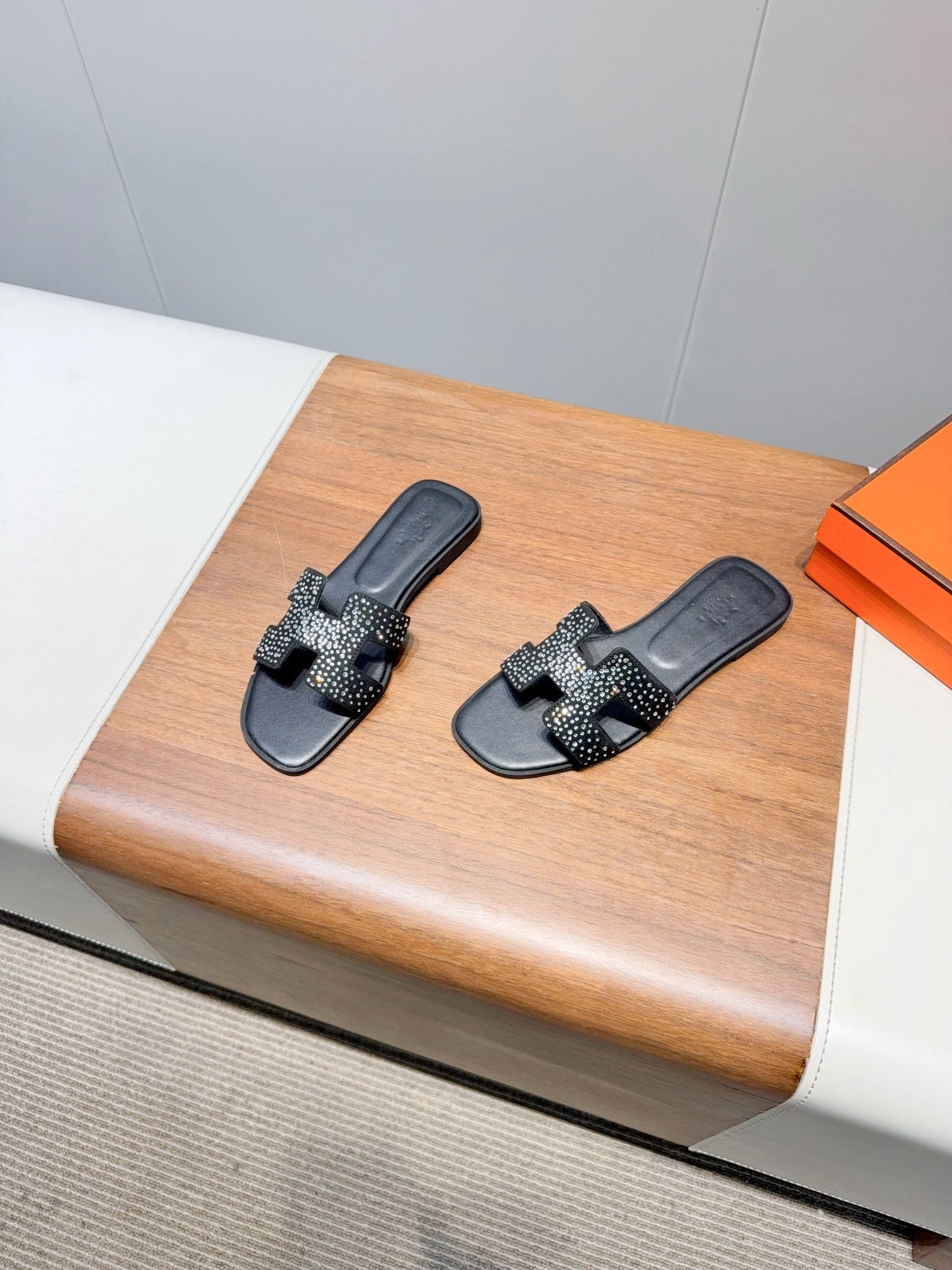 HM OZ Mule Denim Black Brown Cowhide 756853